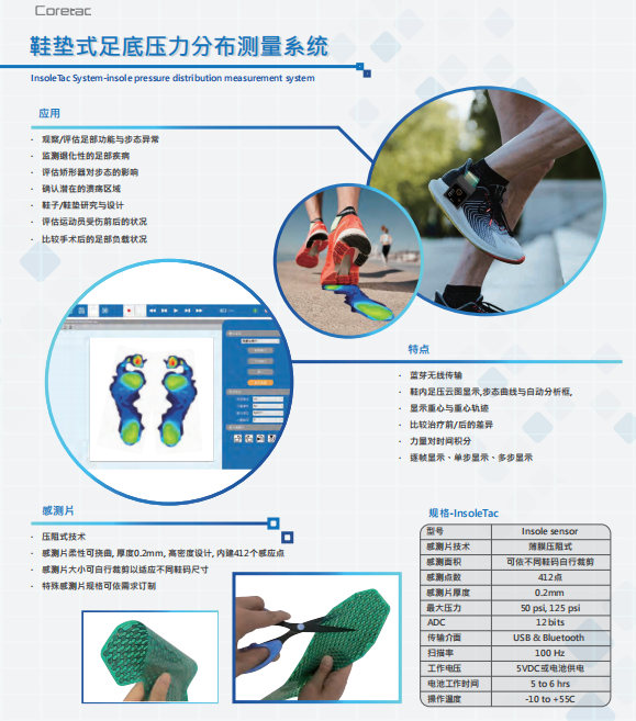 MEMS TECHNOLOGY CORP has developed pressure distribution measurement products with more than 20 years of industry experience, including portable foot pressure plates, insole foot pressure analyzers, walkway foot pressure analyzers, and human body pressure distribution measurement systems, which are designed to provide high-performance pressure analysis tools for users in the fields of rehabilitation medicine, rehabilitation aids, sports, and scientific research. Usage scenarios include and are not limited to: before and after rehabilitation treatment, data basis for orthopedic insole customization, scientific training assistance for athletes, sports biomechanics data collection, and so on.