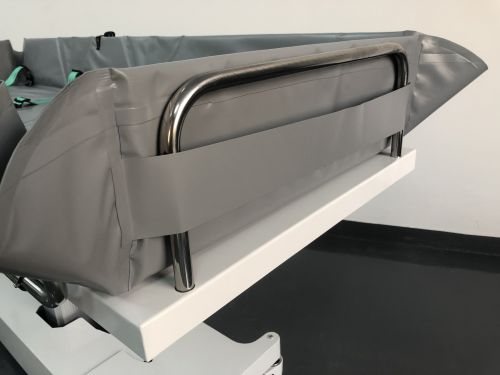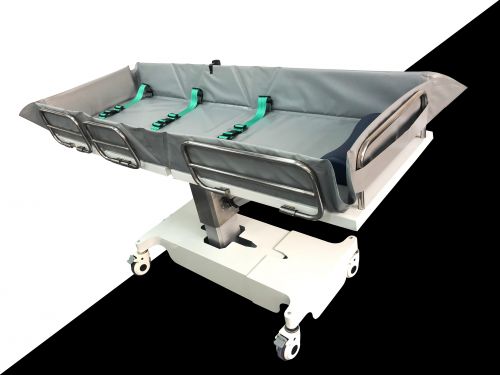 床體電動三折折疊,電動整體獨立升降調節,靠背、腿部各自獨立電動調節 可攤開可收縮折疊行走,便于狹小走廊行走及狹小空間洗浴等電機功率3*6000-8000N,全部鋰電池24V安全電壓供電,防護等級:IP54。 配備舒適安全帶,保護在洗浴及轉運是浴者安全。 靠背、腿部可根據浴者舒適度隨意0°--80°調節。 護工操作簡單,調節到浴者舒適體位。