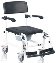 1.KD快拆車架主體結構; 2.后掀PU扶手墊、PU座板、PU座板蓋、PU背墊; 3.配4個5寸帶剎靜音輪組,鋁插桿五金件達克羅防銹處理; 4.標配含腳跟帶,圓形馬桶