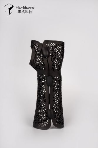 黑格科技3D打印腕手矯形器是用于治療腕關節骨折及周邊骨折固定、橈神經等上肢周圍神經損傷的導致腕屈伸功能障礙的康復矯形器。通過3D掃描患肢外形,使用尼龍材料3D打印而成的患者專屬康復矯形器,輕巧簡便,能有效固定患肢位置。矯形器的支撐角度及包裹肢體的松緊度可根據康復及治療過程所需進行調節,使其完全貼合肢體,促進肌力鍛煉,防止關節攣縮,促進康復進程。