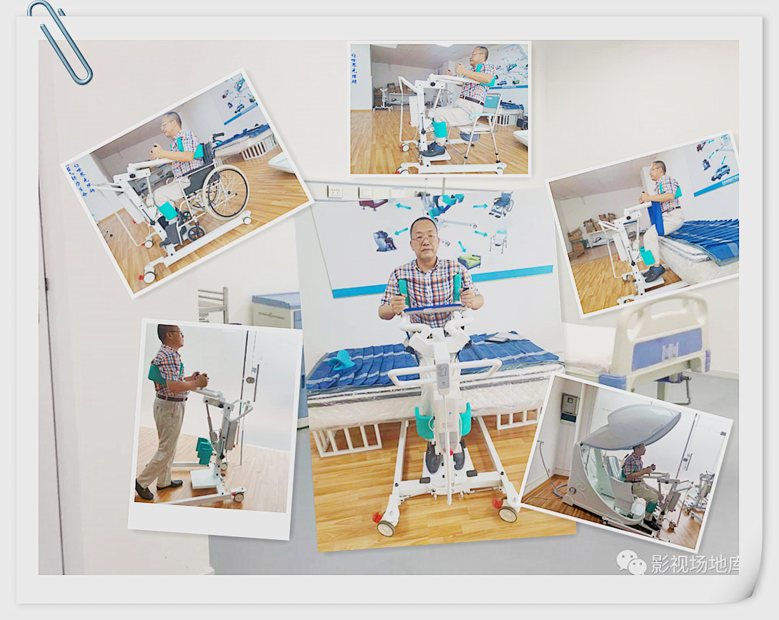 多項自主研發專利、粵中械備20210068號,EMC報告號2121009554;人性化設計理念;設有護腿裝置;寬度和高度調節器 產品優勢:手抱式移位原理:腋窩寬度可自動調節,防上跌倒;底坐寬度調節:一次性完成移位對接不同場景器具;附加增值功能:可幫助直立、牽引、輔助康復行走訓練。產品用途:解決患者在醫院、養老院、家庭移位至不同地點;如:協助患者在醫院上CT、X光等檢測;在家移位至輪椅、馬桶等不同點