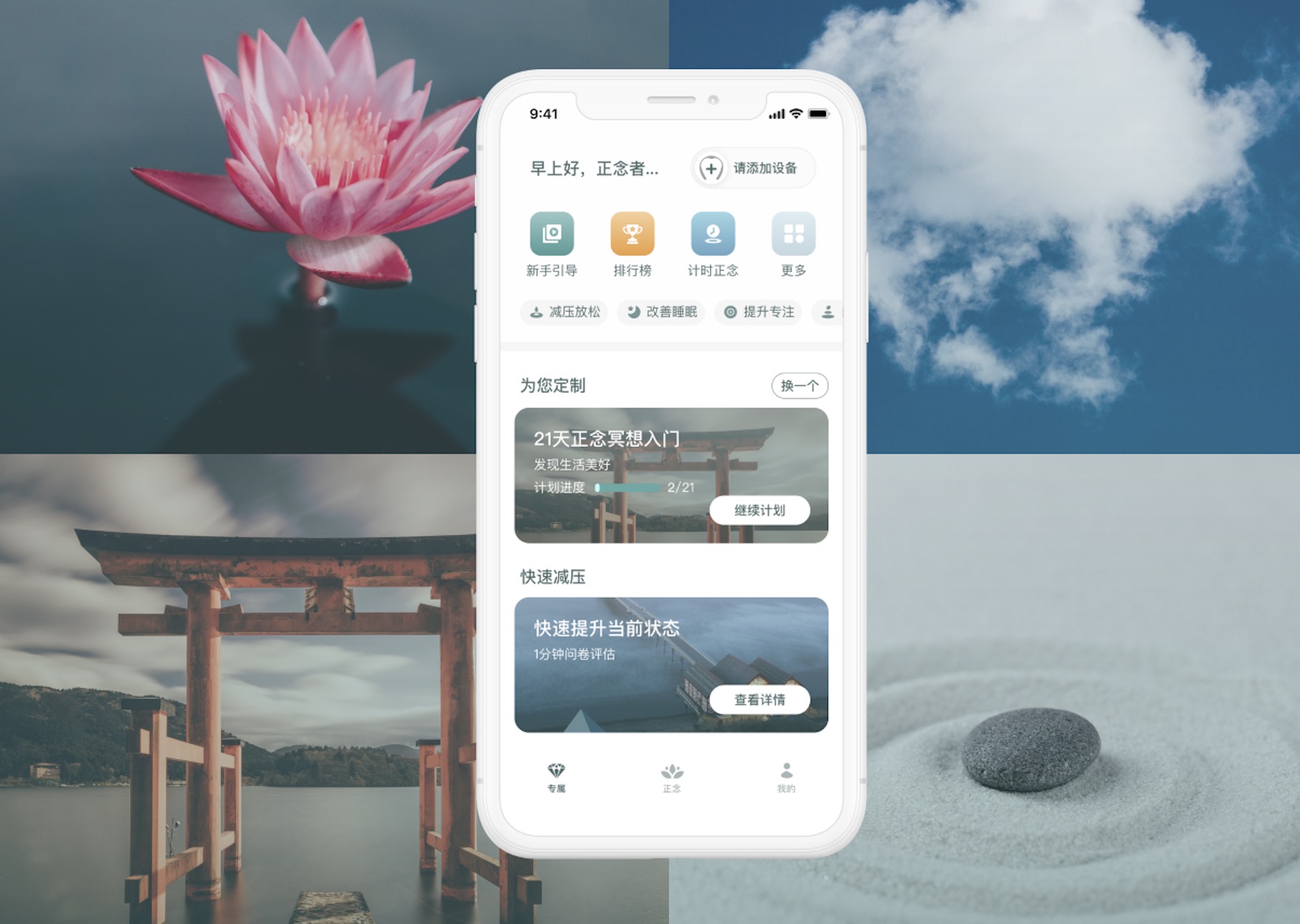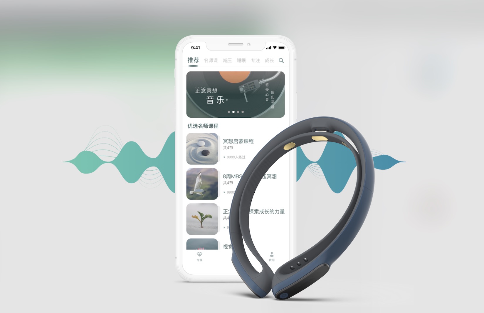 這款將海內外冥想大師減壓內容,哈佛腦機接口黑科技相結合,一個App一個穿戴設備,就能幫助您輕松入門冥想,科學放松,掌握海內外精英人群的同款舒壓方式。 區別于其他設備的非凡體驗,它自主研發的智能冥想算法功不可沒,你的冥想狀態,它有數。戴上它1秒看見冥想指數,實時變化也能聽得清清楚楚,冥想不再是玄學。有了它,2萬公里外的MBSR導師也近在咫尺。