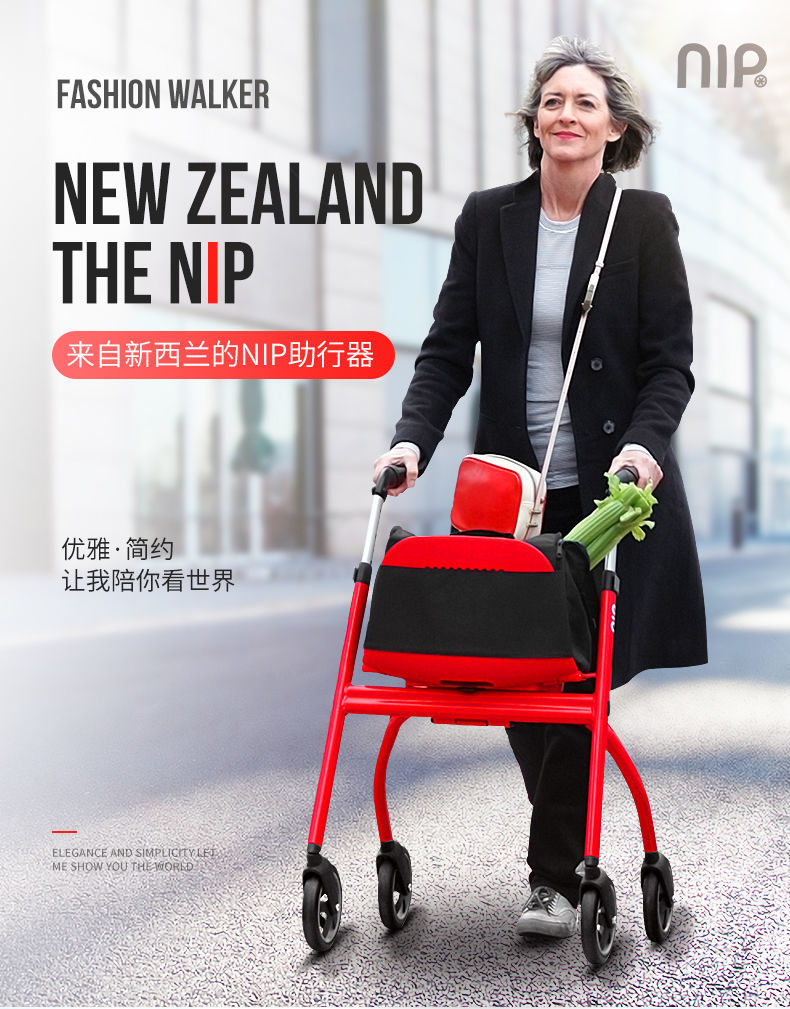 來自新西蘭的NIP助行器 1、一車兩用 購物助行 2、方便折疊、輕巧便攜 3、把手高度調節 創新型剎車設計 4、坐墊寬大、可折疊 5、鋁合金車架 質量更輕 6、雙色可選 美觀時尚