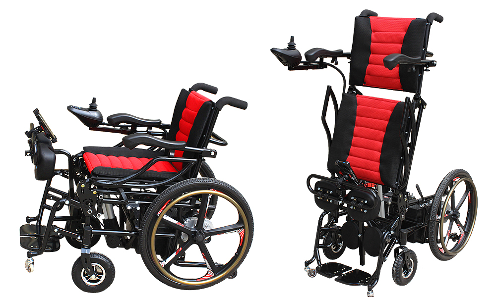 兩側扶手可抬起,可 360 度 0 半徑原地轉彎。具有電動行走,電動站立, 電動站立行走功能