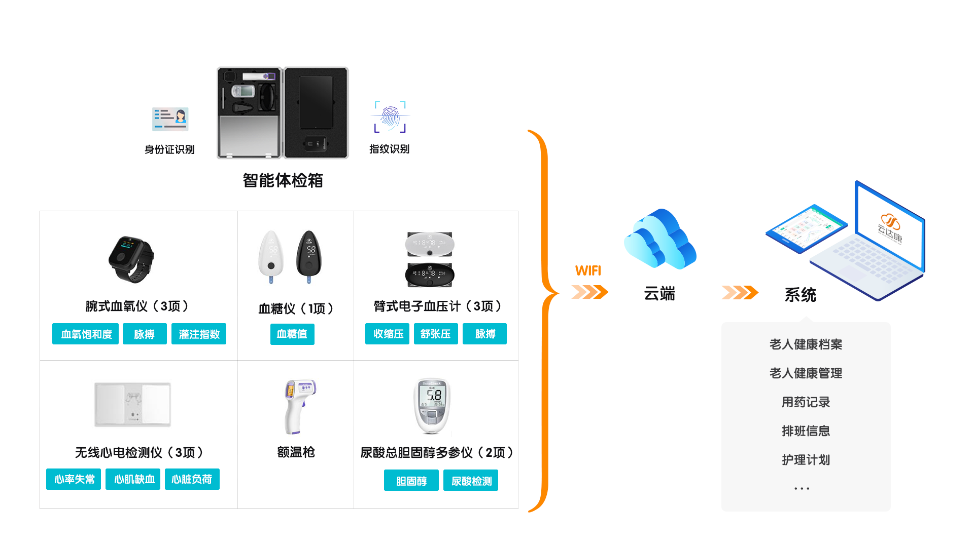 適用于個人/家庭用戶、社區服務站、養老機構、看護機構、養老地產、藥房/藥店等。 通過生理檢測、生化檢測與物聯網、人工智能技術的相結合,對用戶身體各項指標進行檢測,形成長期有效的健康檔案。提早發現疾病風險并防控慢性疾病突發狀況!讓健康管理變得更便捷、變得更高效! 在為用戶的身體健康提供多一重保障的同時,對用戶后續的日常護理、慢病防控及醫療康復等提供數據 指標參考,實現醫療健康數據化服務模式。