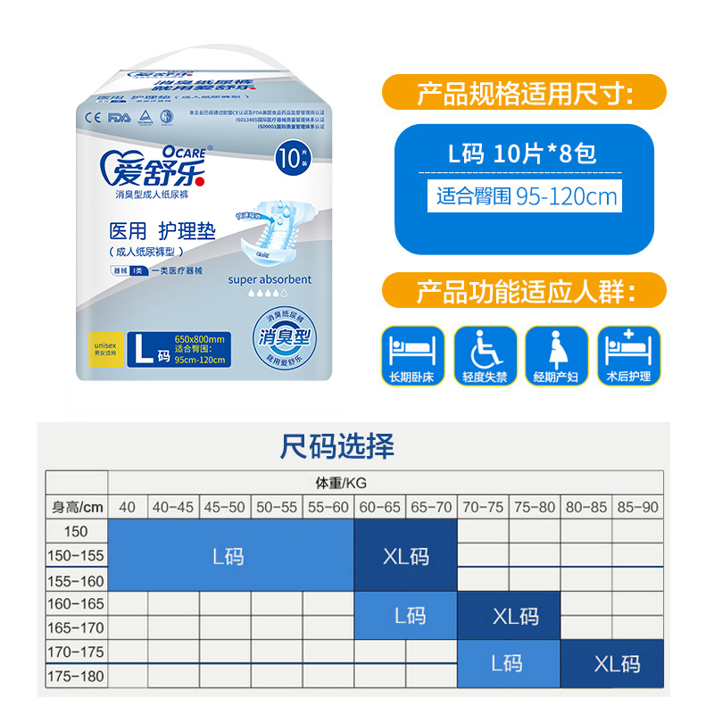 愛舒樂獨有抑味工藝+超倍效瞬吸高分子,穿著無異味,潔凈清新不尷尬 360度彈性透氣腰圍,如內褲般舒適,解決護理+隱私尷尬 快吸速滲導流層及瞬吸無紡布表層,幫助尿液快速下滲,不怕回滲,表層更干爽