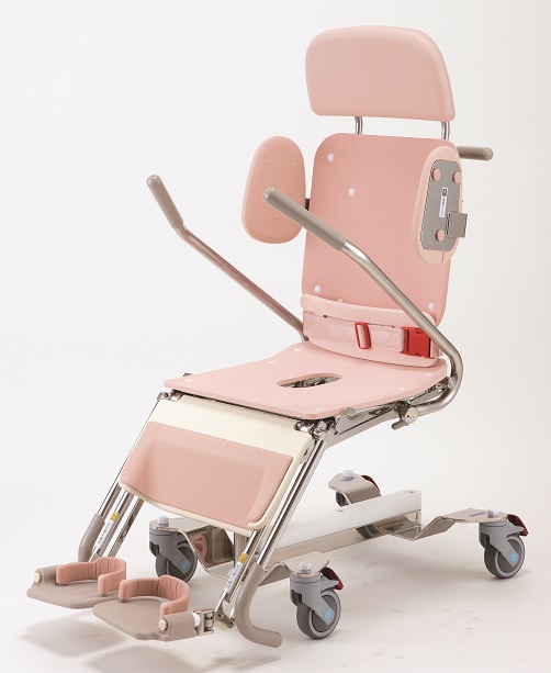 采用護理人員和洗浴者面對面的方式,能夠確認洗浴者全身的狀況使洗浴服務更加安全。專用輪椅為一體結構,連接浴缸時聲音小,震動輕,且能夠與浴缸流暢連接。操作部分集中在隨手就能夠到的位置。“洗浴時間”“水溫”等一目了然??墒箤S幂喴纬势教蔂顟B, 即便是一個護理人員也可為洗浴者 進行臀部清洗服務。適用于半失能老人。