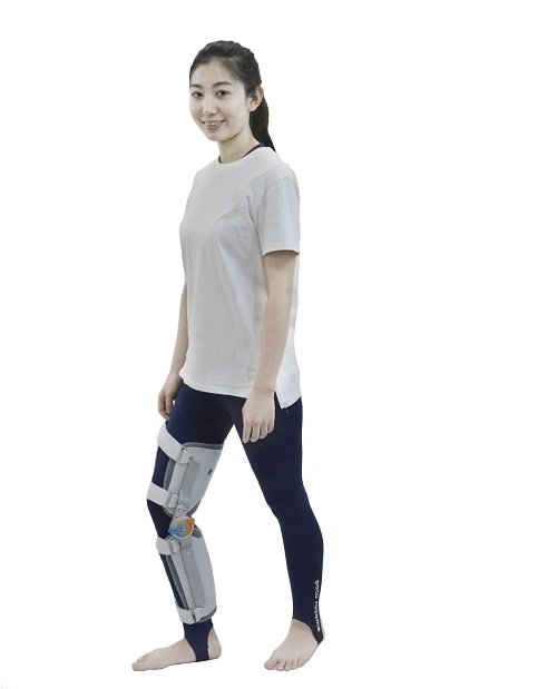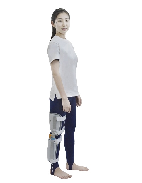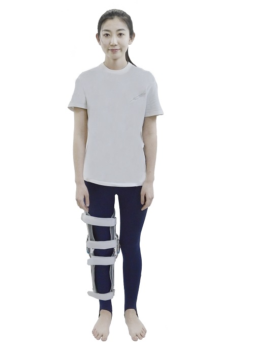 用于膝關節創傷后和術后固定的器械。產品性能結構及組成該產品主要由襯墊、帶墊、護膝墊、搭扣帶、鎖銷、角度調節盤、不銹鋼管架、鋁架或氧化鋁板、塑料伸直限位塊、屈曲限位塊、套環等組成。其中襯墊、帶墊、護膝墊、搭扣帶、鎖銷、角度調節盤直接與人體皮膚接觸,其余組件均不與人體直接接觸。襯墊、帶墊、護膝墊由丙綸或聚酰胺材料制成;搭扣帶由尼龍材料制成;鎖銷和角度調節盤由聚丙烯塑料制成。非滅菌包裝。