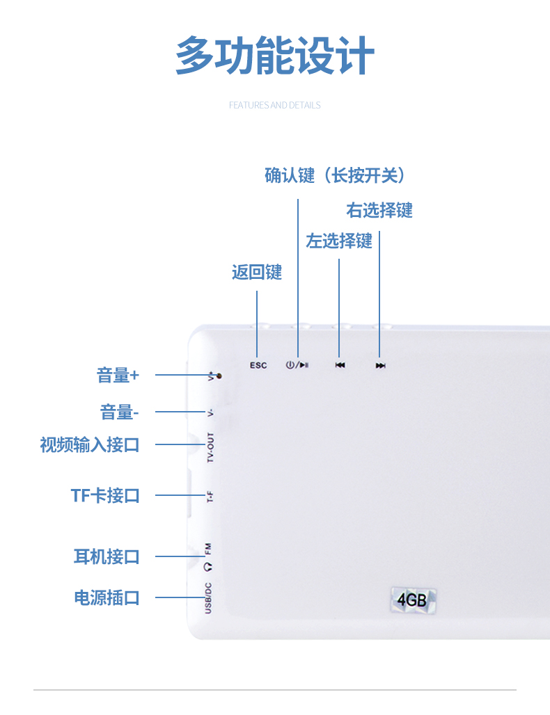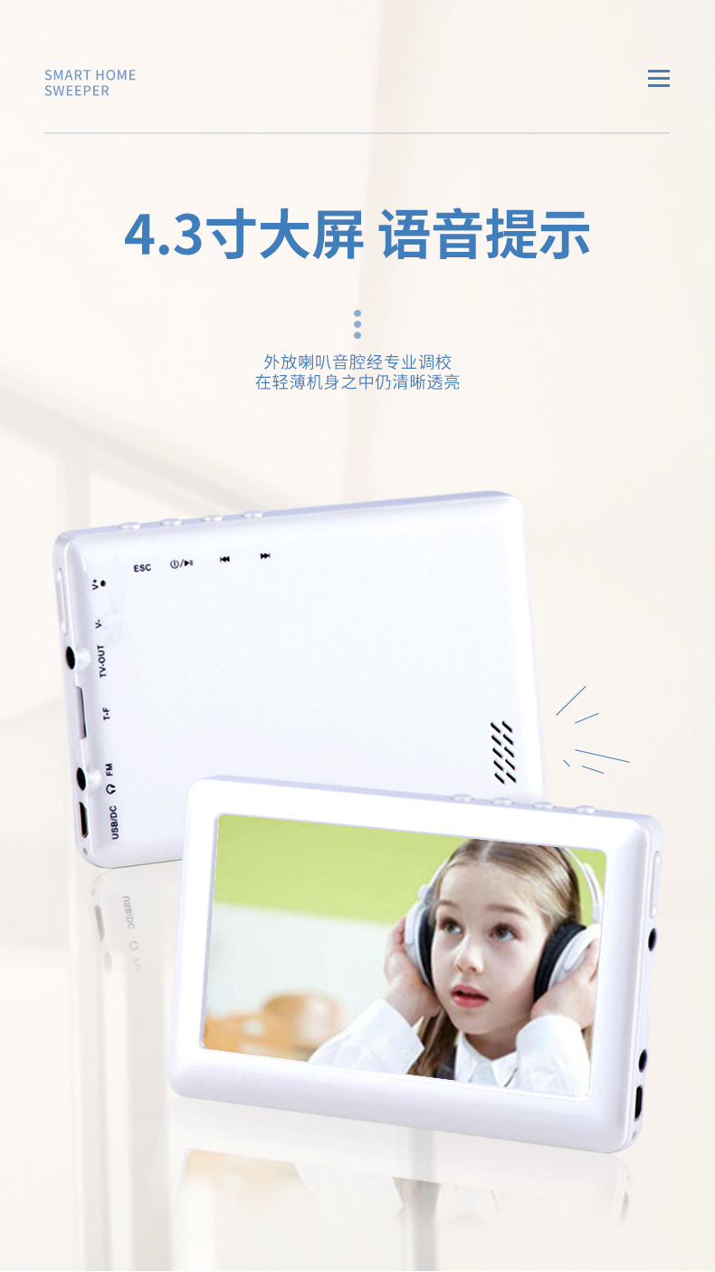 屏幕尺寸≥4.2寸;每一步操作都可以實現步步語音提示;具有視頻/音頻/收音機/電子書功能。