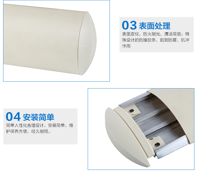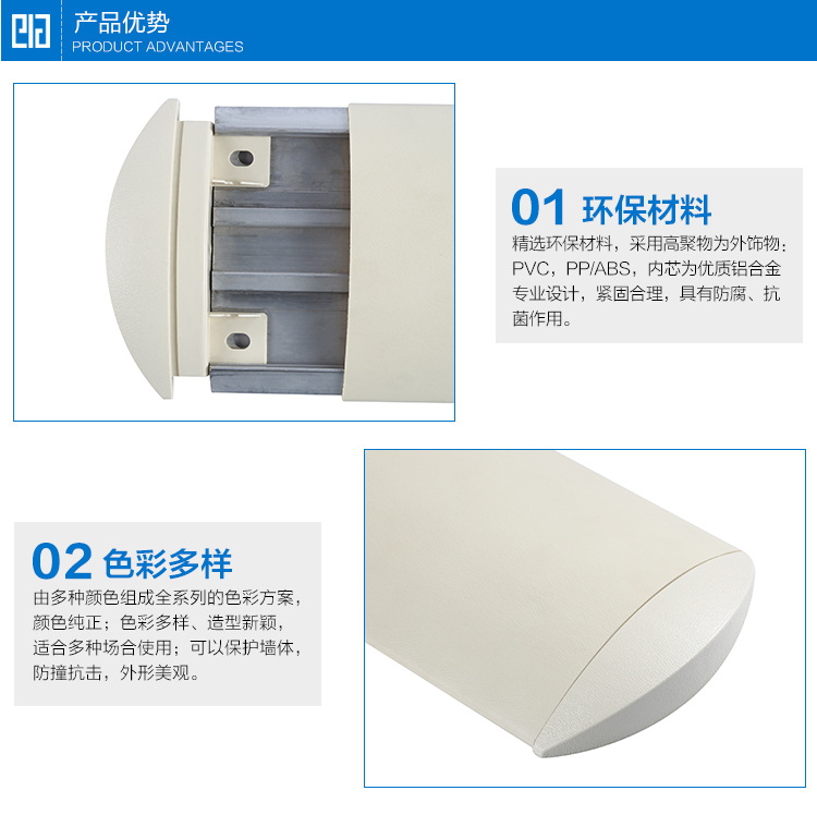 抗菌防撞護板采用高聚物PVC為外飾物,此PVC有防火、防腐、抗菌、易清潔等效果;安裝簡單,津貼墻面,維護保養方便,經久耐用;3、款式多樣,寬窄均可,色彩豐富;護板內芯為優質鋁合金專業設計,緊固合理;表面批文,防火耐光,清潔簡易;抗菌防撞護板和抗菌防撞扶手一起使用,整體保護墻面,防撞、抗擊、抗沖。