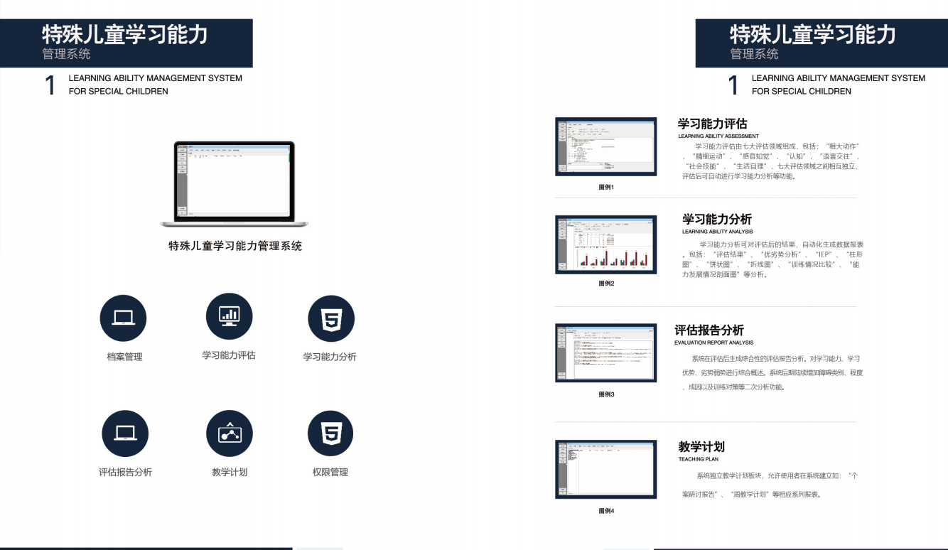 特殊兒童康復機構管理與教學管理系統可以實現班級管理 功能,系統允許使用者對班級全方位管理,其中包括“學生資料管理”、“課時查詢“、”班級設置“、”課程資料“、”報課管理”等綜合性操作。動態備課是本系統特色功能,允許使用者以時間軸的形式添加圖片、音樂、動畫的方式進行動態備課。編輯完畢的課程保存成固定教案模板和講義。智能排課,系統允許使用者在周期內,自動進行課程編排后實現智能排課功能,可實現學期、學年