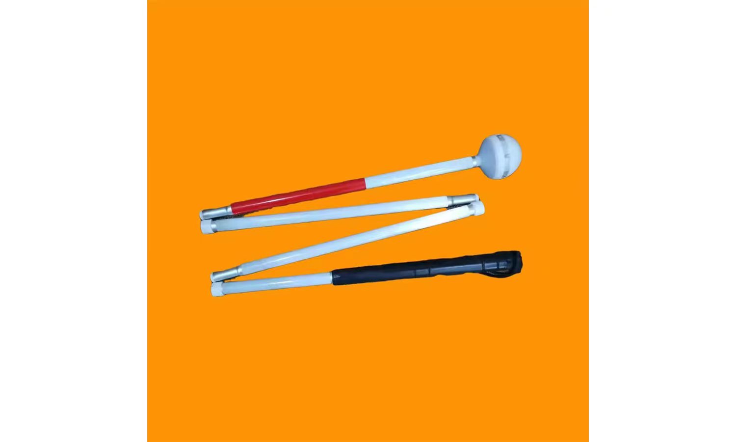 盲杖折疊連接部件連接牢固,具有防松動裝置。杖尖采用旋轉頭設計,通過自發電裝置,使滾輪內置LED燈發出彩色警示光;適合在水泥、瀝青、磚質等硬質路面上使用,易更換。四節折疊,折疊和打開及使用安全,無卡滯現象