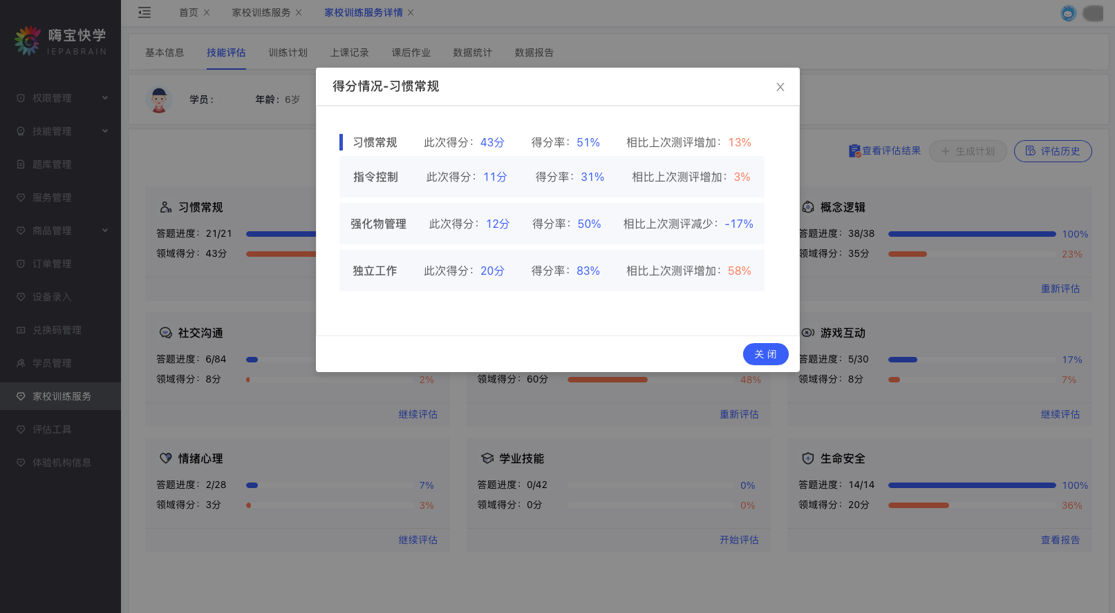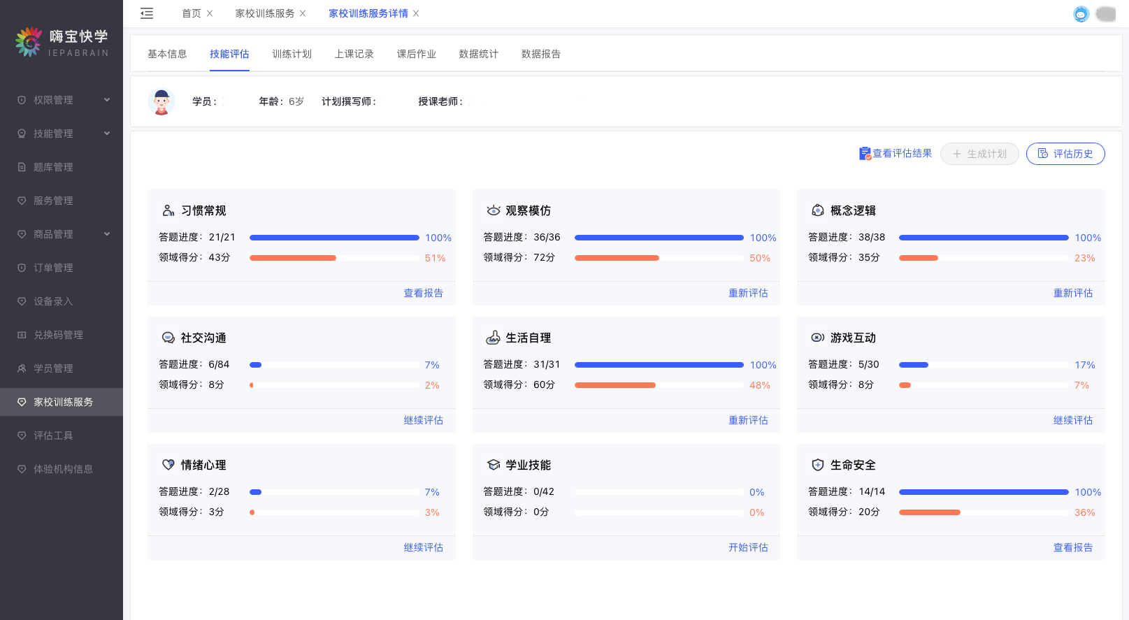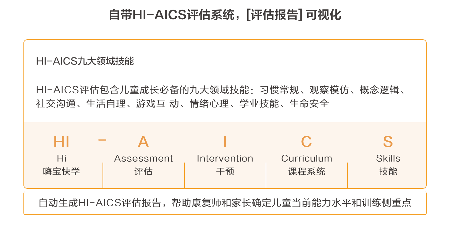 嗨寶快學作為兒童康復機構的數字化教學系統,為康復機構與老師提供包括兒童能力評估、康復教學實施、教案生成、數據記錄、課后作業管理等服務,提高老師工作效率,協助機構線下康復服務數字化。