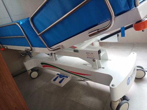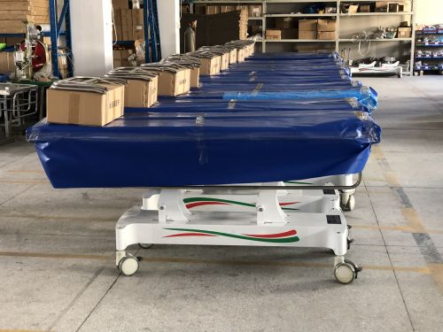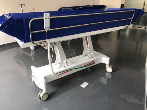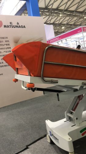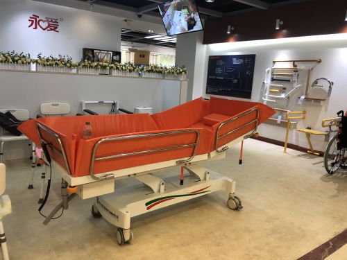 1.將沐浴推床推到與病床并排平行后(間隙應小于5CM)將沐浴推床塔升降至與病床同一高度,打開與病床靠靠攏一側護欄,將浴槽護欄部部份平鋪于病床上,老人側身,將過床器放到老人身后準備過床。 2.鎖住沐浴推床四輪剎車防止移動,將老人利用過床器移到與沐浴推床平行。 3.讓老人兩手左手交疊于胸前,雙腳交疊,護理員一手扶住老人肩部,一手扶住臀部輕推老人完成過床。 4.過床完畢,松開四輪剎車,護欄調至立起