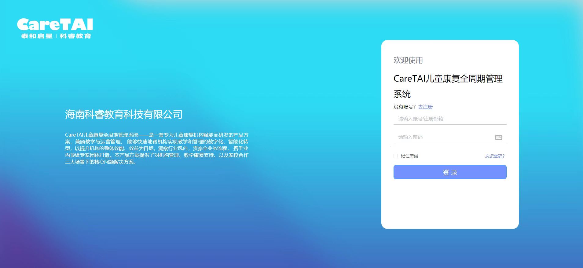 CareTAI是由科睿與泰和教研院BCBA專家團隊共同研發的專注于孤獨癥兒童康復教育全周期康復管理系統。以機構兒童康復規范業務流程為引領方向,致力于提供更加專業化、智能化的教學康復支持,從預評估(試課)、正式評估到制定/調整IEP、生成個訓/組訓計劃、訓練記錄、家庭干預、完成IEP,實現全流程數字化管理。同時,也搭載了C-PEP—3評估服務。