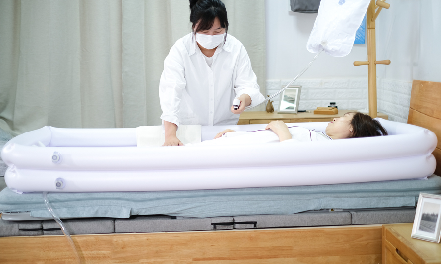 作為"優質護理示范工程"優選配置,根據 臥床護理特點,結合易于清潔與消毒的護 理理念研發。供長期臥床人士定期清潔衛 生,保持肌體健康。