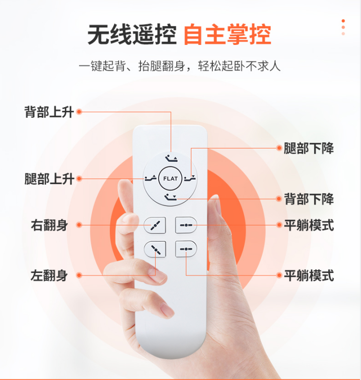 康護佳電動翻身床墊,功能齊全,輕松照護,左右側翻,抬腿起背、無線遙控、品牌電機,居家專用,適用于各種床。
