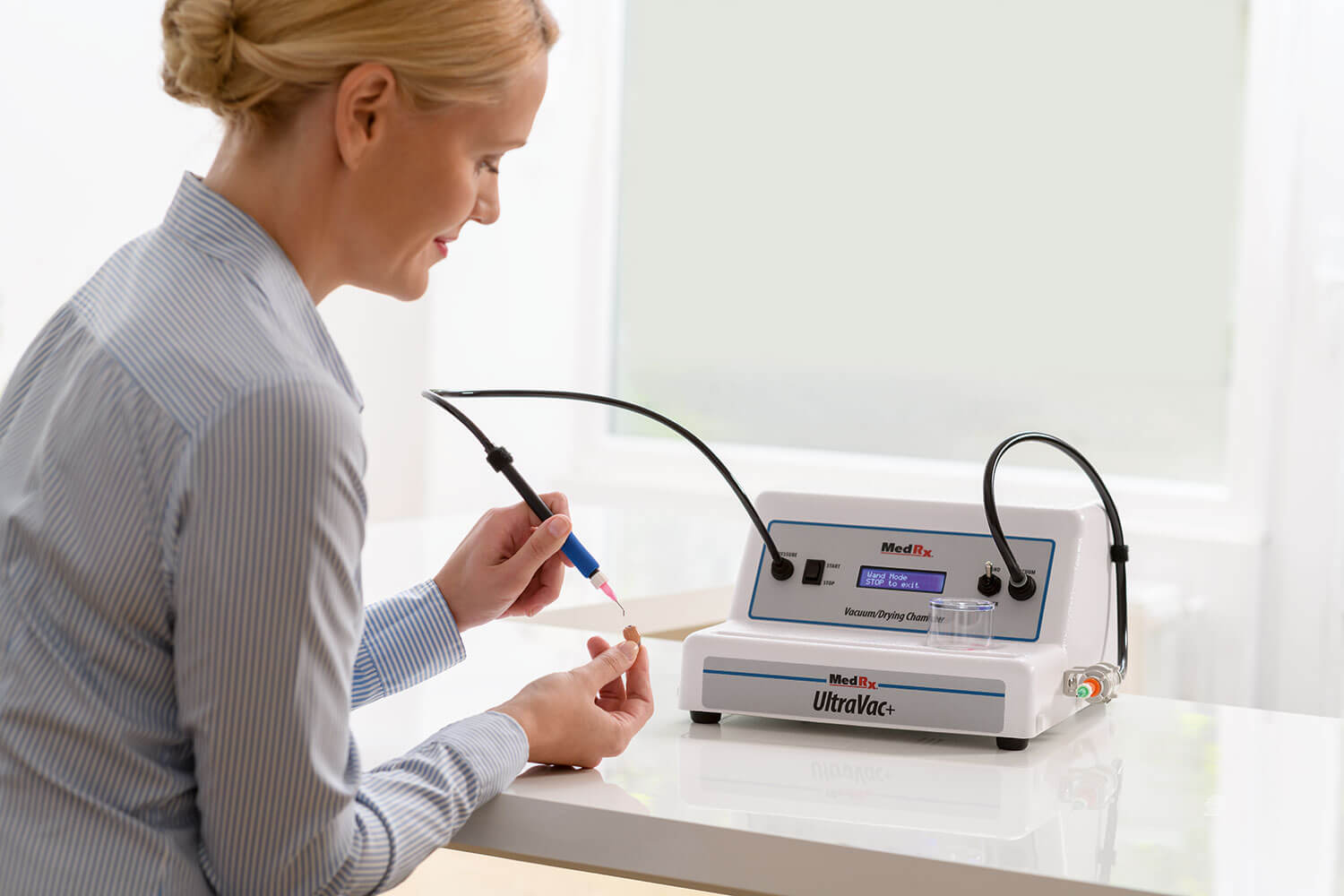 全新升級的UltraVac+助聽器保養儀專為呵護助聽器而生,外形更加簡潔美觀,除塵和干燥兩大功能獨立工作。除塵功能分吸塵與除塵兩個手柄,經過嚴格計算的風力在確保清潔功能的同時,還能避免損壞助聽器的元器件。干燥功能通過真空進行干燥,4分鐘快速干燥,并且在干燥結束時為避免泄壓過快損傷助聽器,專門進行了緩慢泄壓的設計。設計的細節均為延長助聽器使用壽命,是您做助聽器保養工作的一位優秀搭檔。