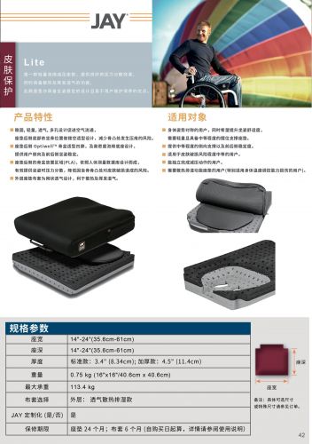JAY Lite 是一款穩固、輕量、透氣、多孔設計促進空氣流通的減壓座墊,座墊后側底部依坐骨位置坐鏤空適型設計,減少骨凸處發生壓瘡風險。