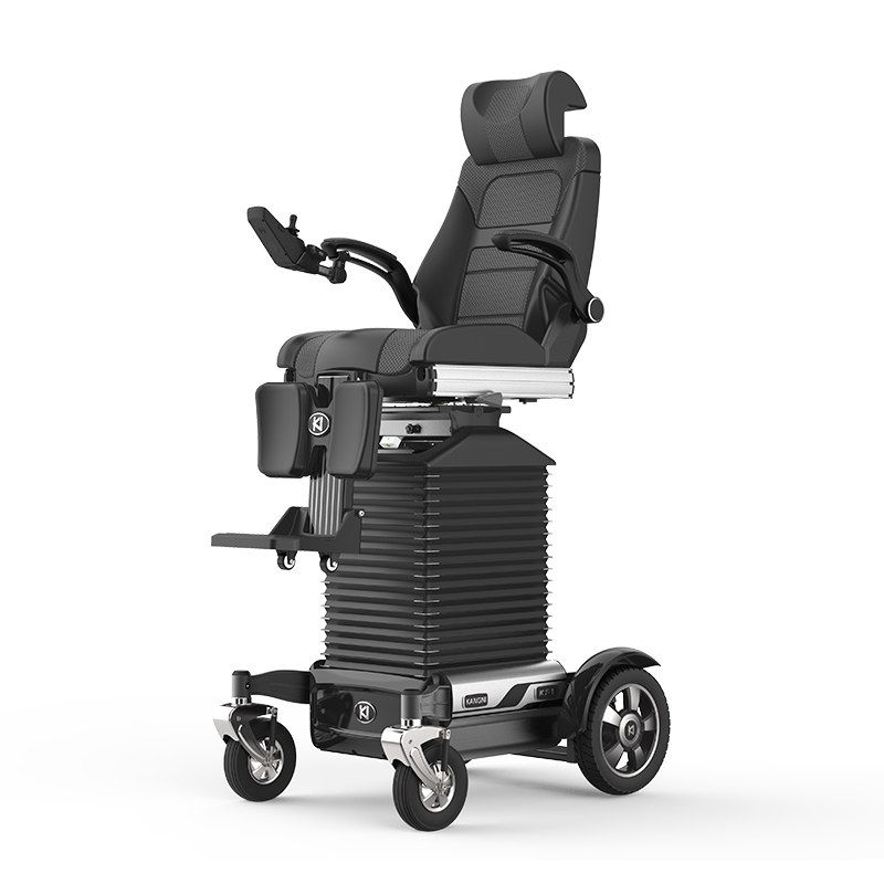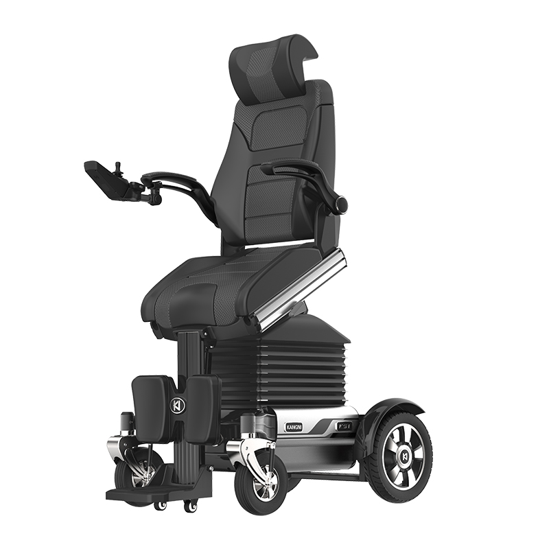 KS系列智能康復訓練型電動輪椅,填補了國內高端電動輪椅車的研發空白,輪椅通過腳踏、座椅面、靠背角度電動調節,調整舒適度,滿足不同坐姿的需求。 康尼KS1系列智能電動輪椅具有12項核心功能:腳踏、靠背、座椅調節、自平衡、電動升降、電動逍遙、手動/電動旋轉、一鍵助站助坐、越障、遠程求救、云智能、無線遙控等功能。