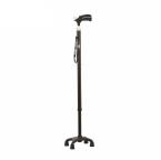 1、承重可達125kg,結實穩固; 2、上支鋁合金亮黑處理,下支為尼龍加纖設計; 3、高度9檔調節,滿足不同身高人群; 4、四腳腳墊,穩當出行; 5、手杖采用鋁合金材質,凈重0.465kg,輕巧易攜帶,老人可輕松提起; 6、防滑手柄、貼合人體手型設計,久握舒適不累; 7、手杖可折疊收納,方便攜帶。