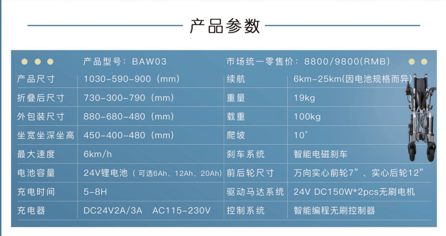 1、鋁合金車身,凈重17公斤 2、快拆式腳踏,方便上下車、移位 3、收合簡單,免彎腰,可放后備箱 4、專利防后傾輪,二段式設計,有效防止傾倒、后翻,安全加倍