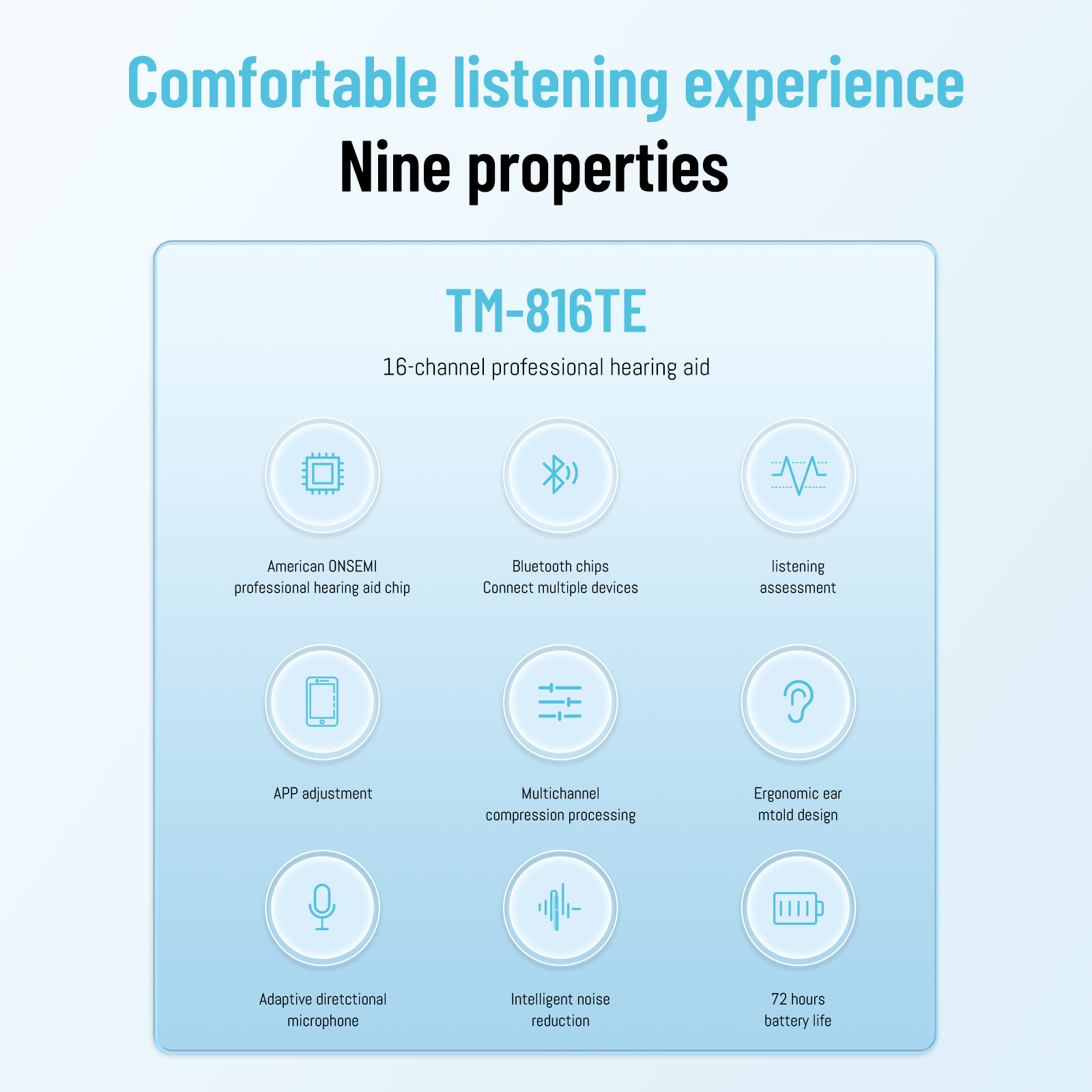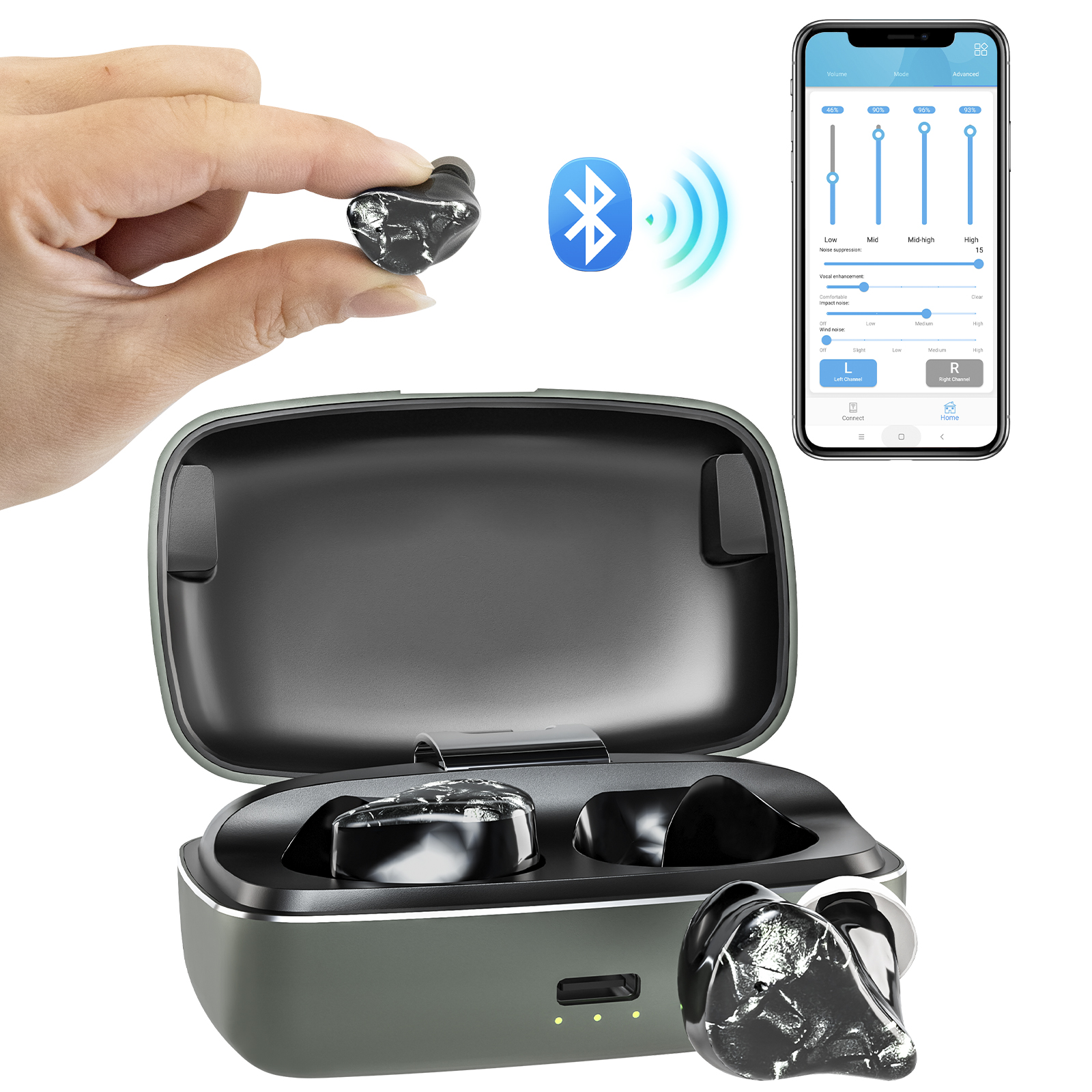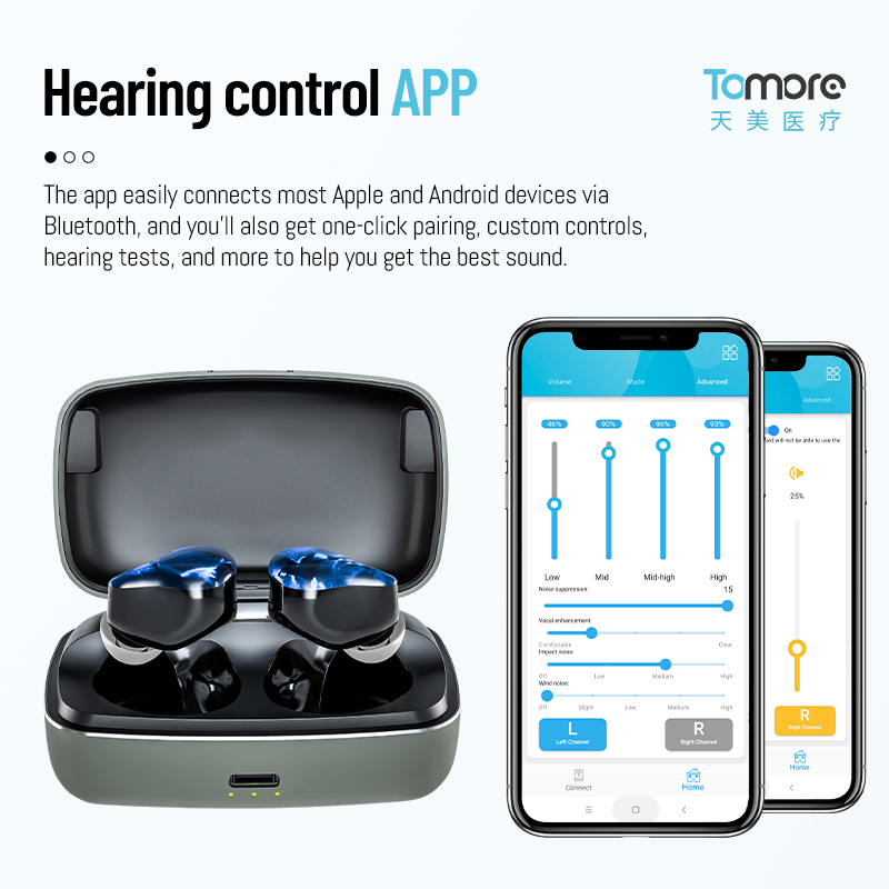 這款助聽器是數字16通道、EQ32通道TWS風格,適用于中度聽力損失人群。