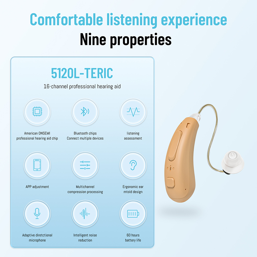 這款助聽器是數字16通道、EQ32通道RIC風格,適用于中重度聽力損失人群。