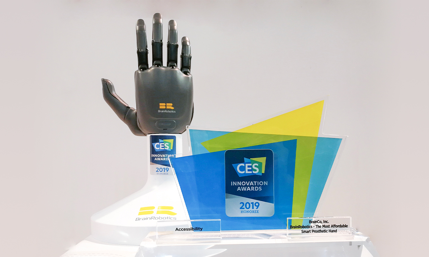 BrainRobotics智能仿生手,是一款腦機接口技術與人工智能算法高度整合的智能產品。這款仿生手可通過檢測佩戴者的神經電和肌肉電信號,識別佩戴者的運動意圖,并將運動意圖轉化為智能仿生手的動作,從而做到靈巧智能,手隨心動。