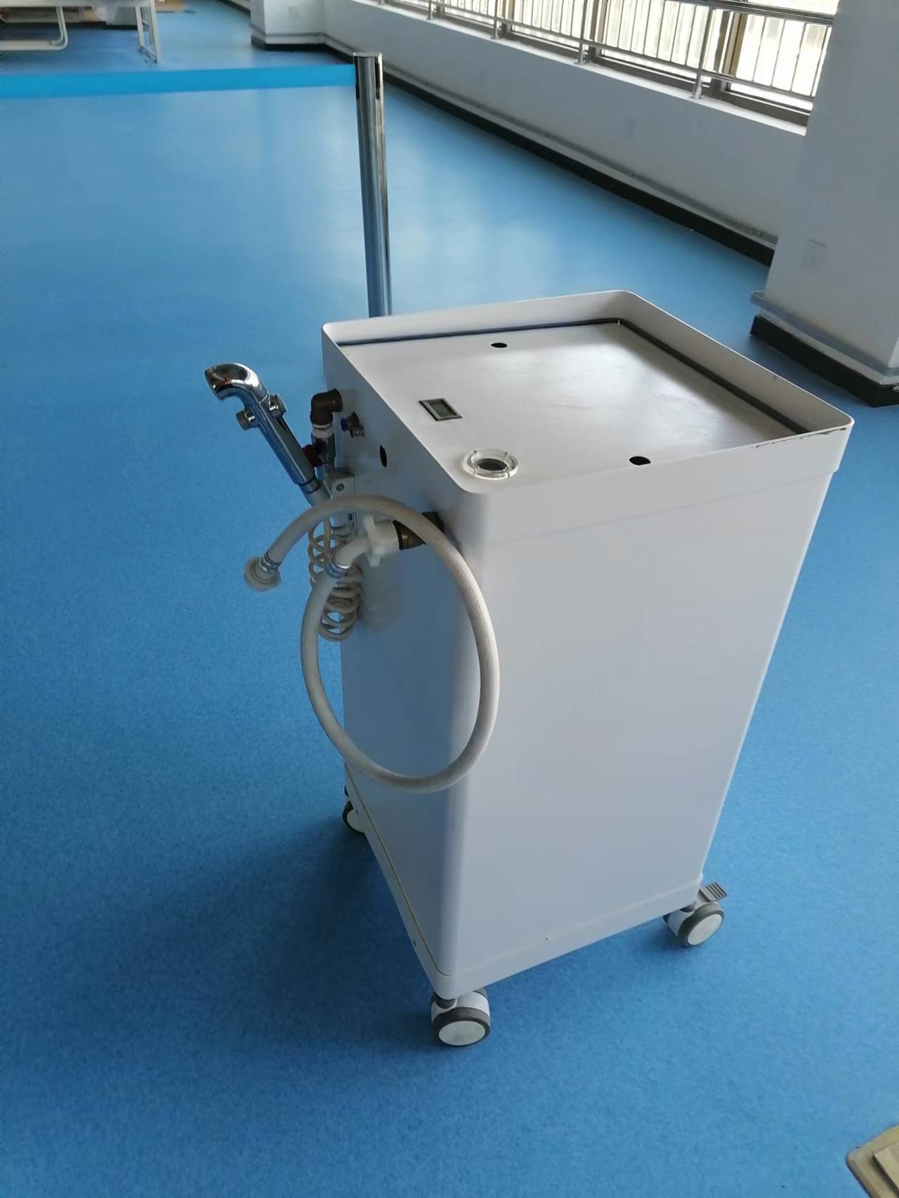 洗浴機,產品參數和性能• 本產品自帶壓力儲水功能。洗浴時無需任何動力加壓裝置; • 本產品采用噴塑處理,提升外觀質量的同時以免遇水生銹; • 本產品注水時有水流顯示,儲水溫度有數字顯示。 • 外形尺寸:L400*W400*H800(±10)mm • 儲水量:25L • 壓力:1.5KG • 無需電源 滿足患者洗頭、洗腳等日常洗浴需求、便后沖洗功能; 減輕護理人員的工作強度,有效降低患者在變換位置