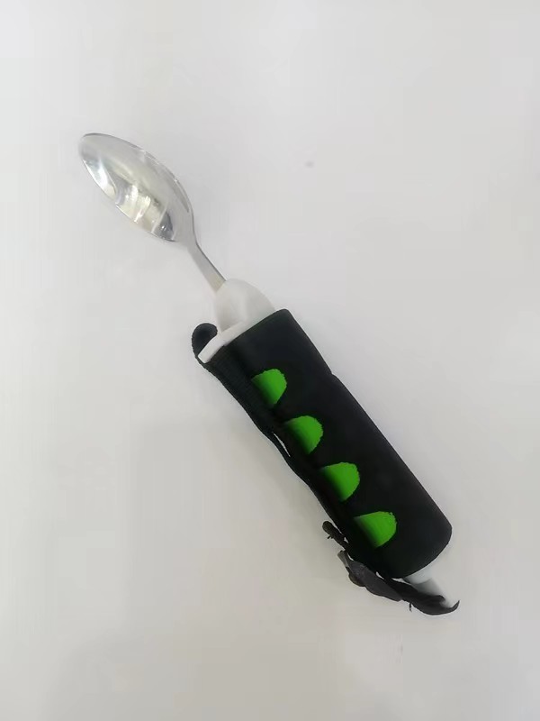 該產品握柄材質為防滑材料NBR制成,勺部為不銹鋼。產品間隔設計可增加手部與握柄間的摩擦,易于抓握。方便指捏、握力減弱的偏癱患者自行進餐。勺柄尾部留有穿戴孔,扣帶采用尼龍材料,柔軟舒適,依靠鋸齒形設計調整扣帶長度,有效避免因長時間配戴產生的不適感。3.5*8*23.5cm。適用于握力喪失及握力不足人群。