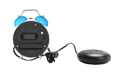 產品由馬蹄鬧鐘和圓盤振動器組成。1. 供電方式:a.鬧鐘:1節1.5V電池;b.振動器:220V交流電源。2.規格:振動器直徑85mm。3.材質:1)鐘體采用金屬; 2)振動器外殼采用ABS工程塑料。4.功能:具有鬧鈴功能,以震動形式提醒使用者。 適用于一/二級盲和全盲、弱聽、全聾人群。
