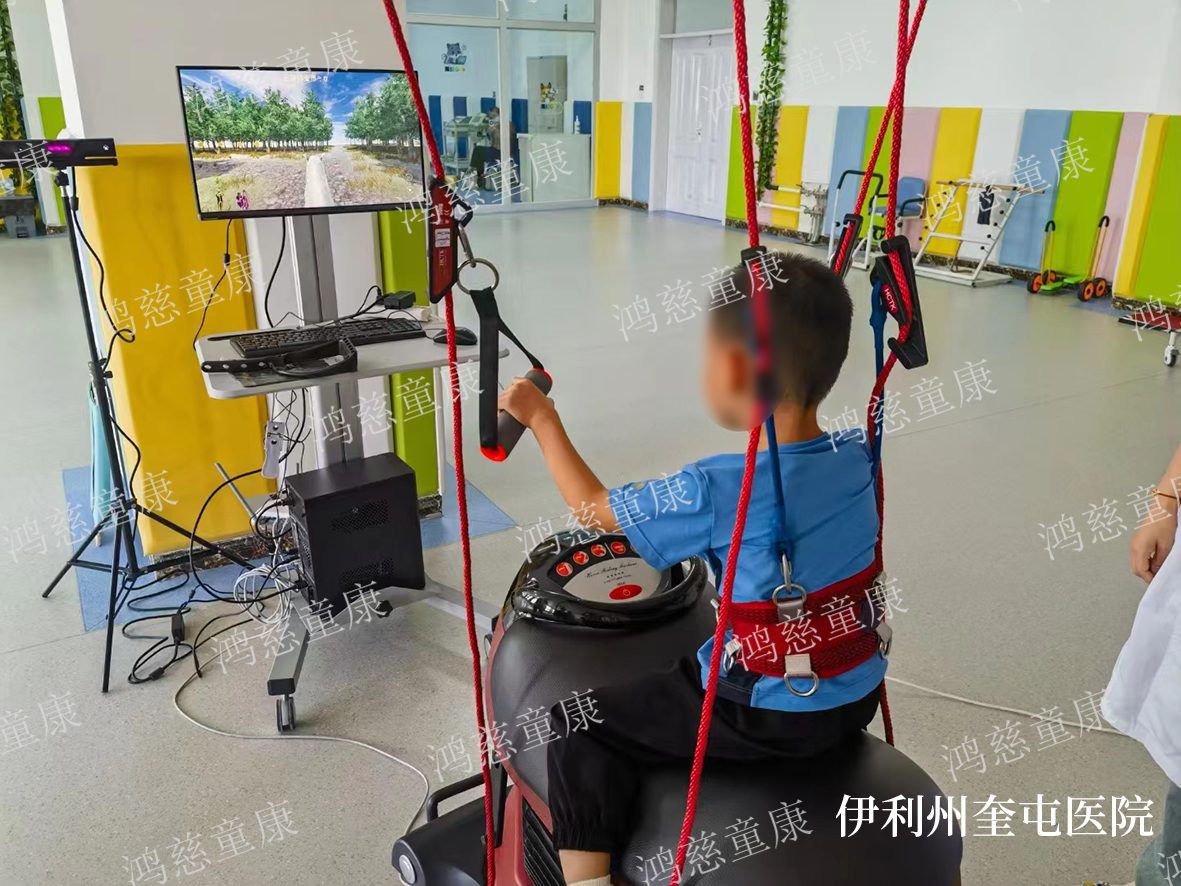 虛擬與現實馬術動態康復訓練系統簡稱“馬術康復訓練系統”,該系統模擬不同狀態下馬匹不同動作的律動及頻率,并結合虛擬的情景互動訓練系統,模仿馬匹行走、奔跑、跳躍、前仰、后翻等動作變化,模擬森林、河流、海邊的自然環境變化,實現快樂狀態下的沉浸式運動康復訓練,針對生理、心理、認知、社會化及行為上有問題的病患進行康復訓練,以達到放松肌張力、提高協調性加速功能恢復進程。