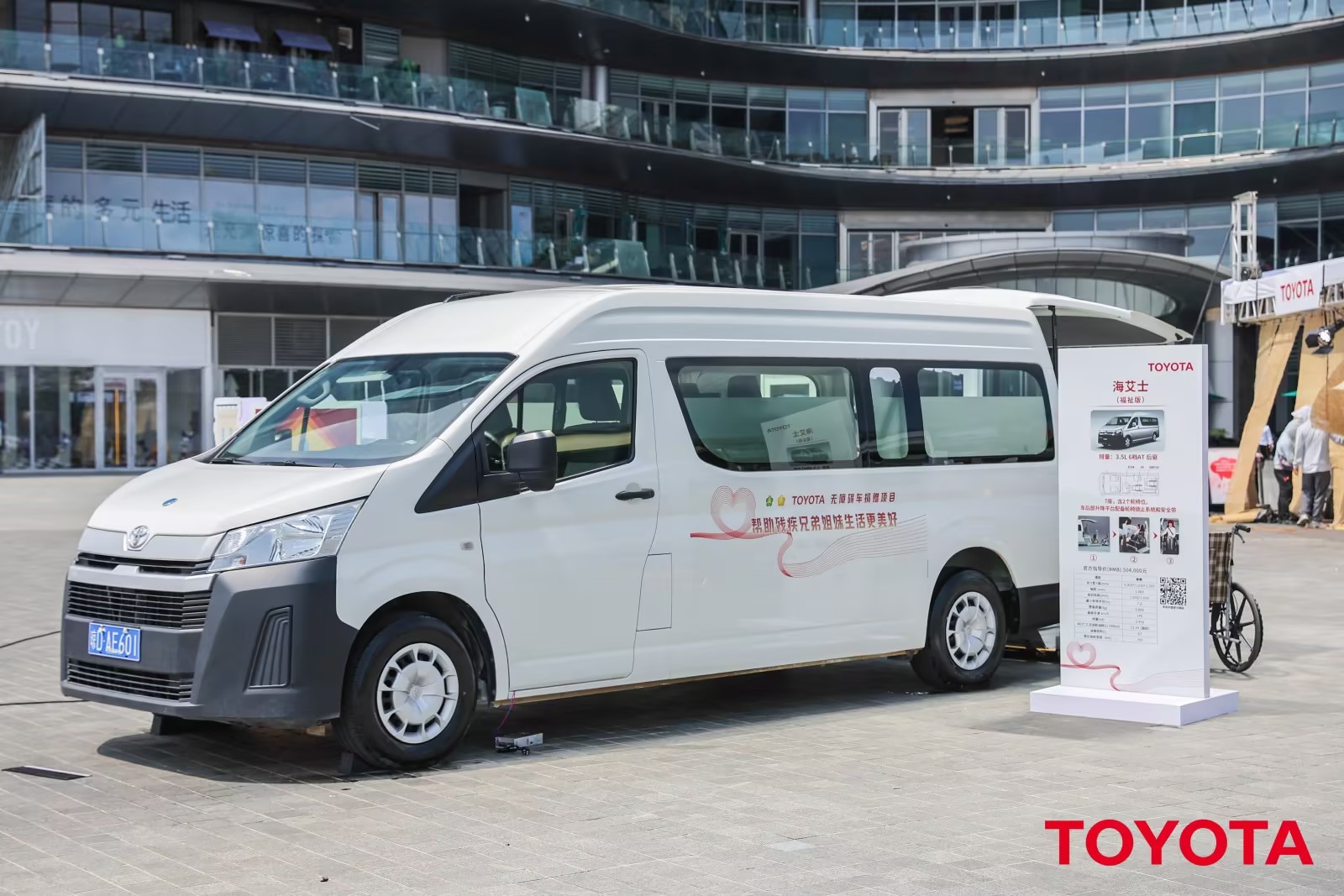 輕型客車,汽油(92#),3.5L V6 ,6擋AT,后驅7座(含駕駛位),正常座椅5個,輪椅位2個,搭載TAMI升降平臺,輪椅可直接進入車內,車內配有輪椅固定裝置。升降平臺伸出車外長度1850㎜,寬度1385㎜,車內高度1520㎜。通過升降平臺輔助乘車,適用于老年人、輪椅使用人士、殘疾人、機構用。