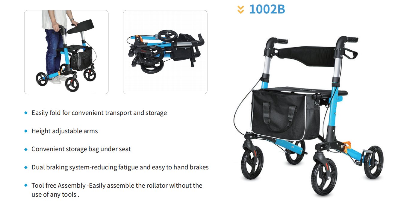車身可折疊,拿取出行更方便 帶軟墊座椅,可隨時坐下休息 免工具可拆卸靠背 配有購物袋,出行購物更實用 有駐剎功能,使用安全放心 高度可調節,可按身高調節