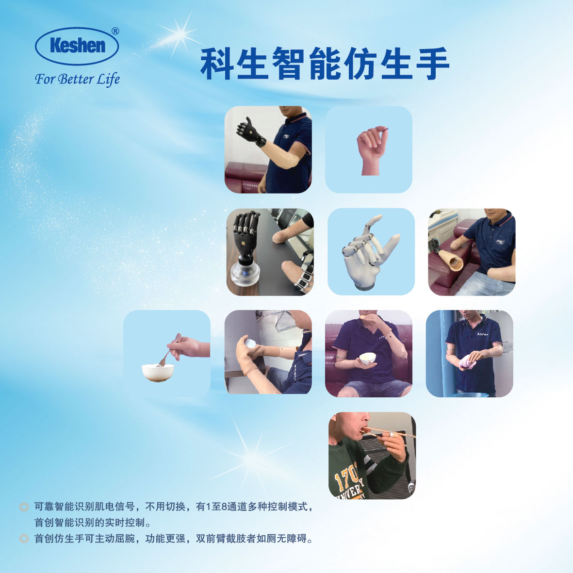 ◎從2011年科生推出智能仿生手填補了國內空白,經多次升級換代,滿足截肢者不同需求。◎首創主動屈腕智能仿生手?!蚩沙直胶庵悄芊律?。◎具有1至8通道肌電信號識別和智能控制系列產品,使截肢條件差的傷殘人和高位截肢者都能自如控制智能仿生假肢?!蚩粕悄芊律偈指叨确抡妫懈鞣N不同尺碼,小號可以與女生十分匹配?!虬惭b方法與普通肌電手相同,非常方便?!蚴讉€通過國家標準檢測?!虼魃戏抡媸痔谆顒幼匀?。
