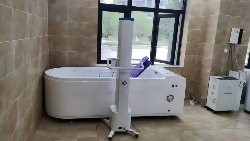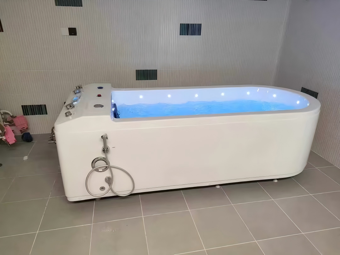 RH-V-3全身渦流氣泡浴槽與移動推車,專為康復中心、醫院、高端康養機構設計,適用于神經肌肉、術后及亞健康人群。亞克力一體成型,1000L恒溫渦流+120孔氣泡+光療音樂,30組智能處方,臭氧+UV雙重消毒,水電分離雙漏電保護。配套304不銹鋼EVA躺椅推車,150kg承重,600mm電動升降,可折疊扶手,鋰電池續航,設備納入中國康復輔助器具目錄。