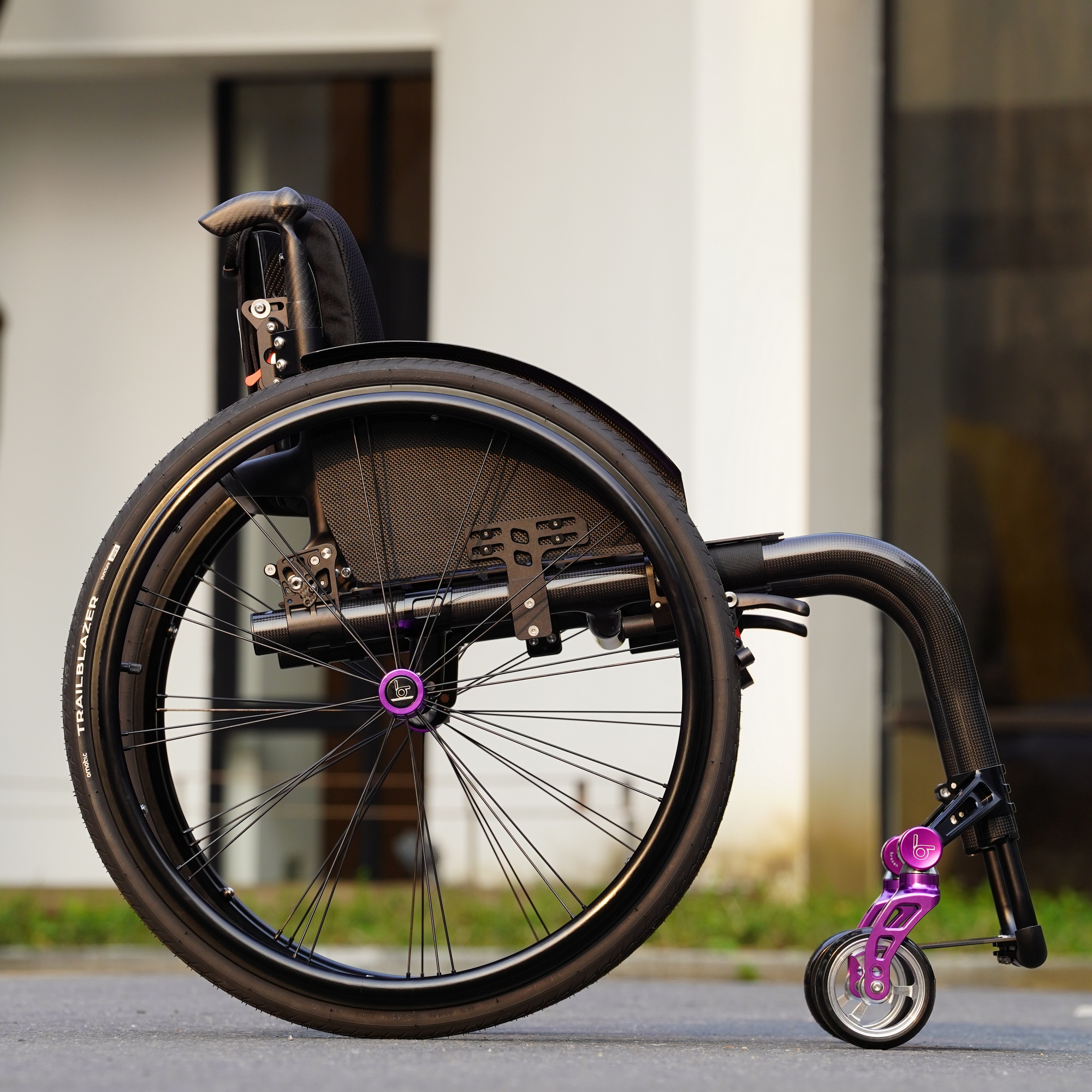 每一臺X1輪椅都是由經驗豐富的專家為尊貴用戶專屬定制。 主要零部件使用高等級復合碳纖維制造,輕量,穩定,耐久。 可選配碳纖維坐姿支撐靠背,舒適減振前叉,高性能輪組,超級抓握手推圈等多種選裝件,提升舒適度,美觀度和安全性。 靠背輕松前折、大輪一鍵快拆。 整車重量9公斤起,車架重量5公斤起。