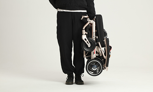 超輕便電動輪椅,輕松折疊,靠背可后躺,重約19.8kg,折疊后可輕松放入后備箱;可上飛機無憂出行