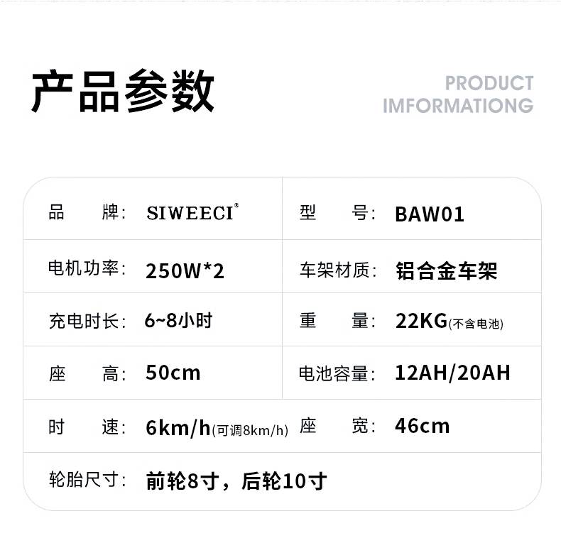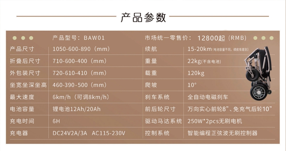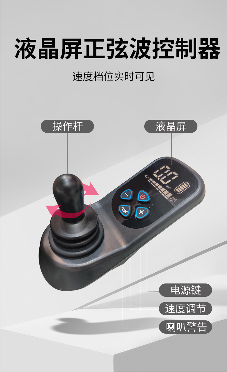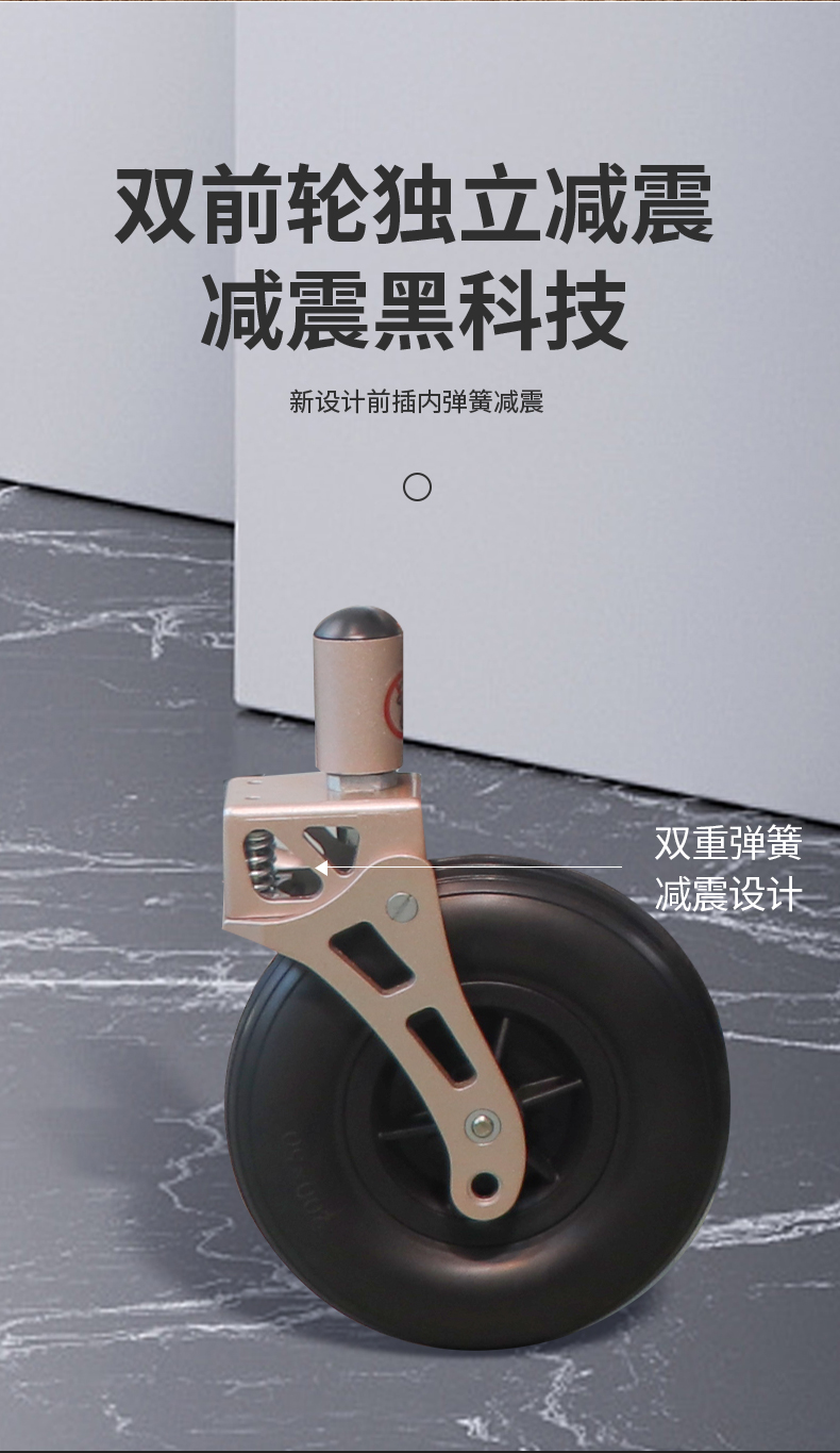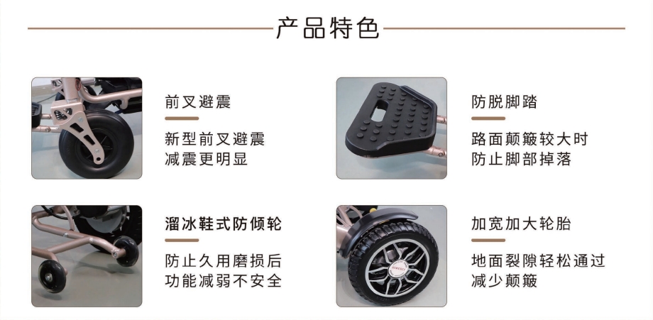 1、航空鋁合金車身,加寬輪胎,輕便又穩固 2、全新黑科技減震設計:前叉減震+大彈簧減震 3、坐姿兩檔可調,有效緩解臀部壓力 4、輕松折疊,可放后備箱,可上飛機(12Ah鋰電) 5、控制器可下翻,防止搬運觸碰 6、500瓦無刷免維護電機,動力充沛 7、液晶屏顯,高端智能,柔和起步,智能降速 8、可選配無線遙控器,遠程遙控