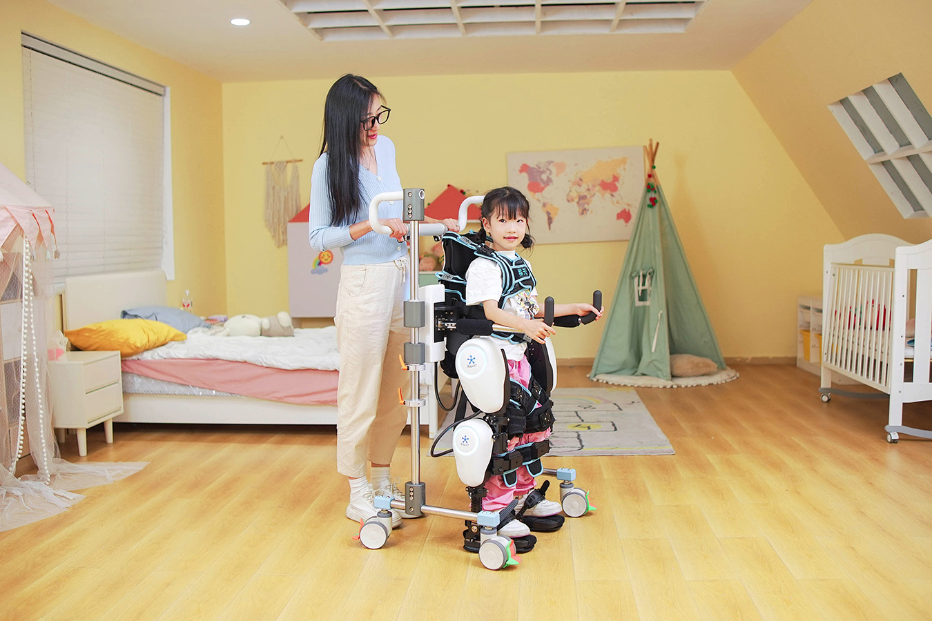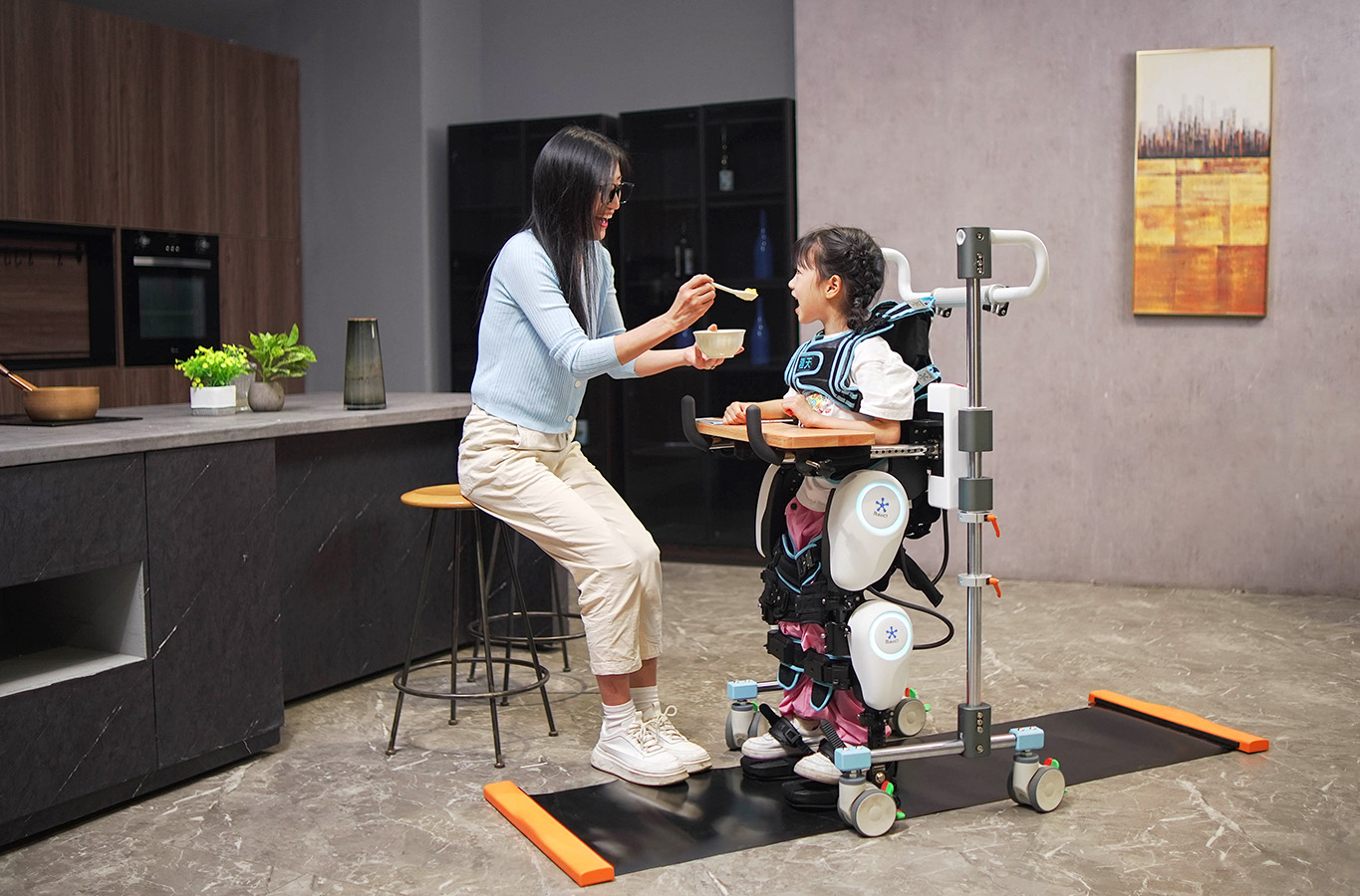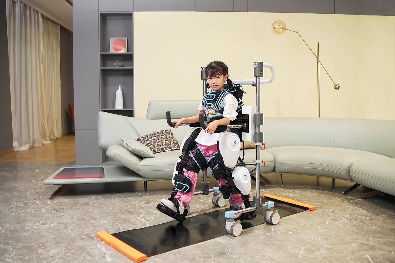 兒童外骨骼機器人是一款用于改善下肢運動功能異常的智能康復訓練設備。產品利用神經可塑性原理,通過標準、重復的步行訓練,增強本體感覺輸入,糾正異常步態,促進大腦再學習,進而改善兒童步行能力。