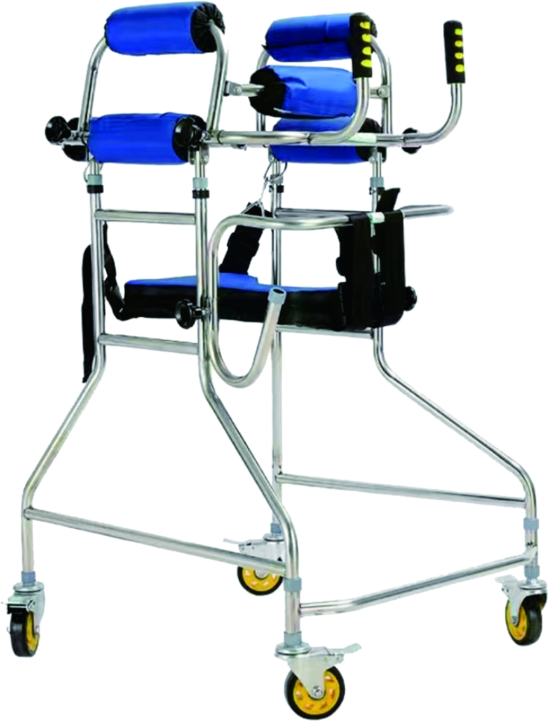 助行器是一種通過固定腰部和臀部,幫助使用者保持直立姿勢的康復醫療訓練器械,可先讓使用者在他人的幫助下由坐位變為站立位,加強下肢力量,防止關節變形,肌肉萎縮。