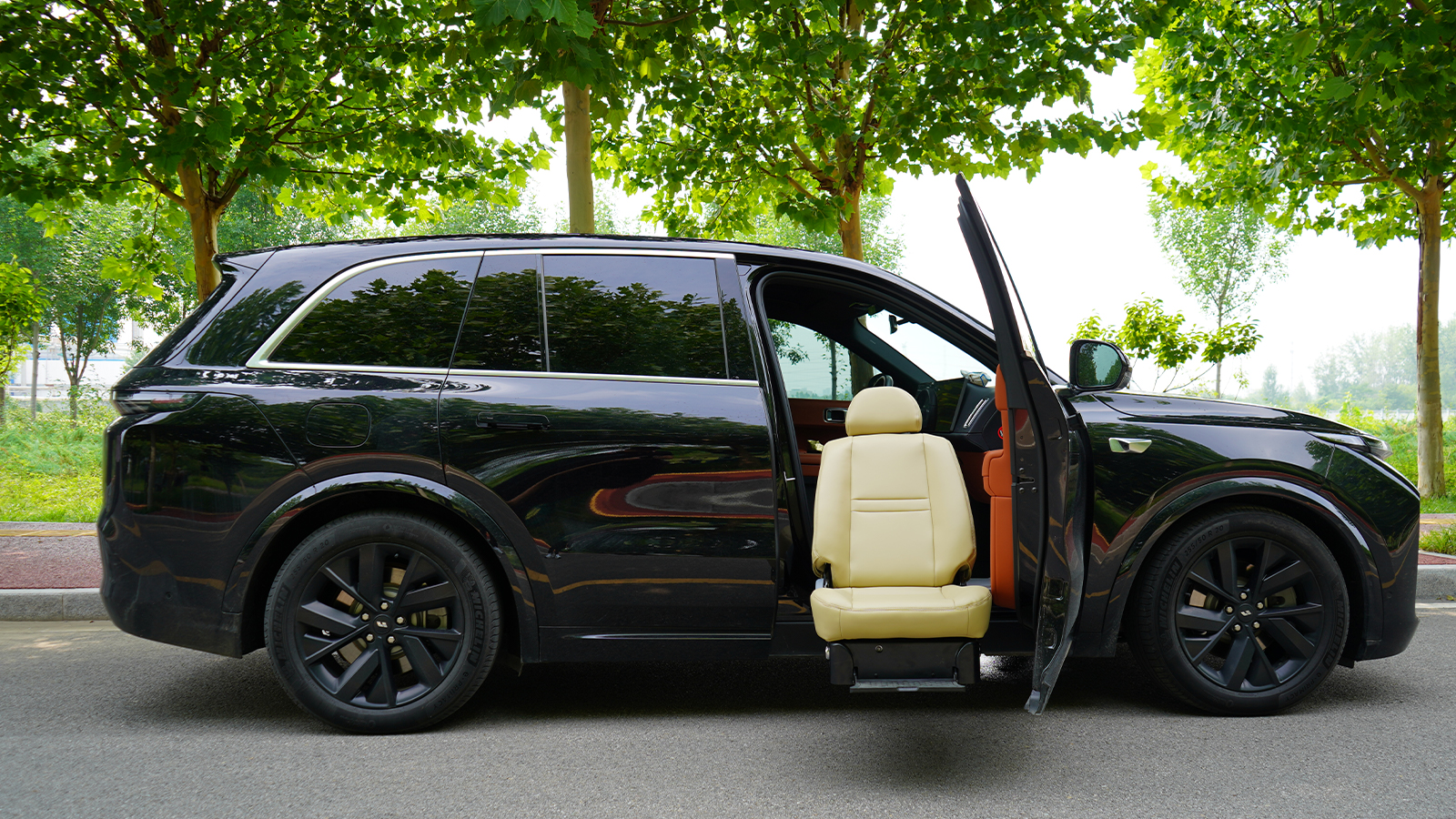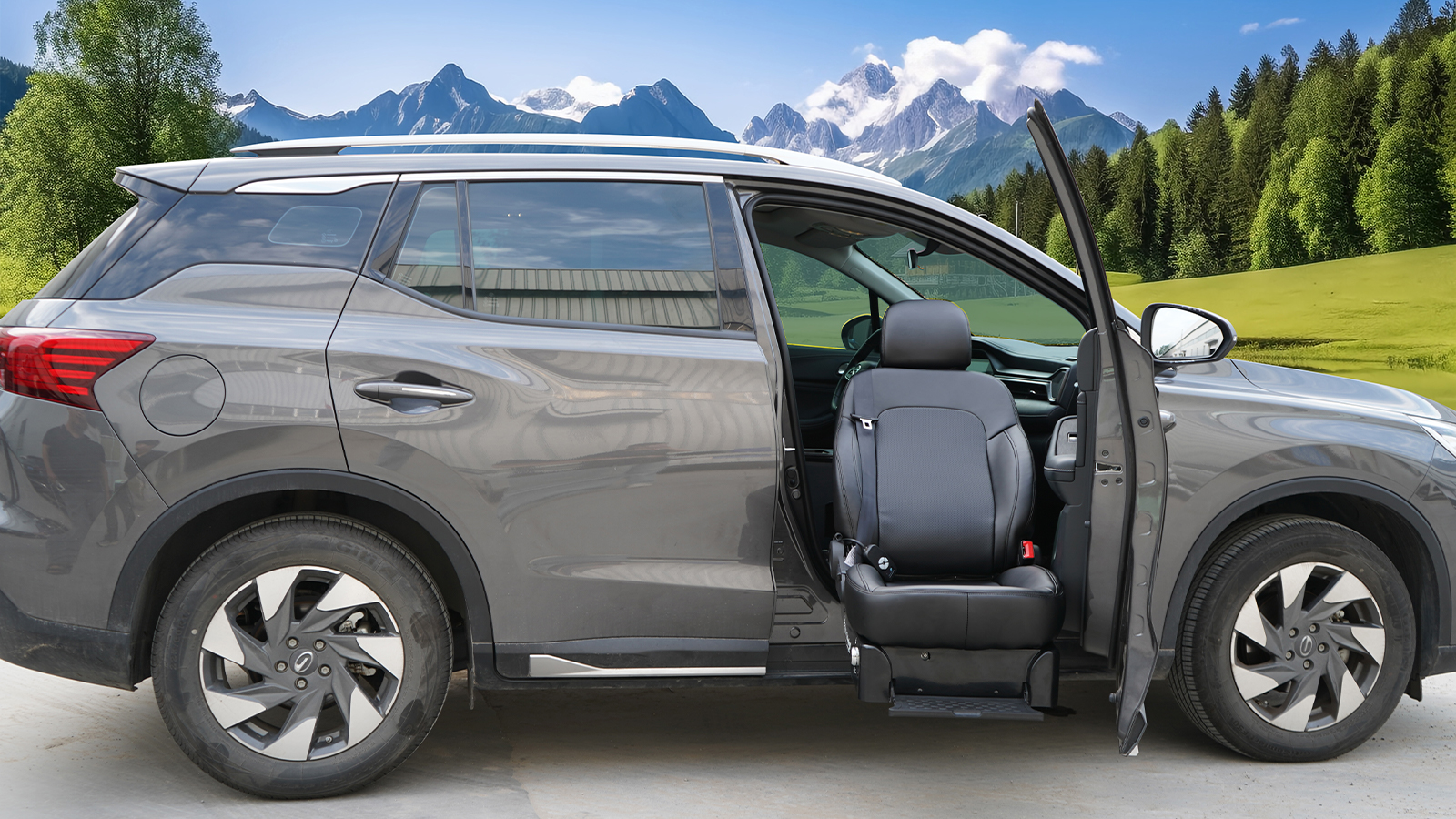 福祉座椅適合腿腳不便的老年人、殘疾人或是行動不便的人群。座椅可以旋轉出車外,并且根擾乘客的需要進行座椅距離地面的上下調節高度,使乘客更加方便和舒適地上下車。