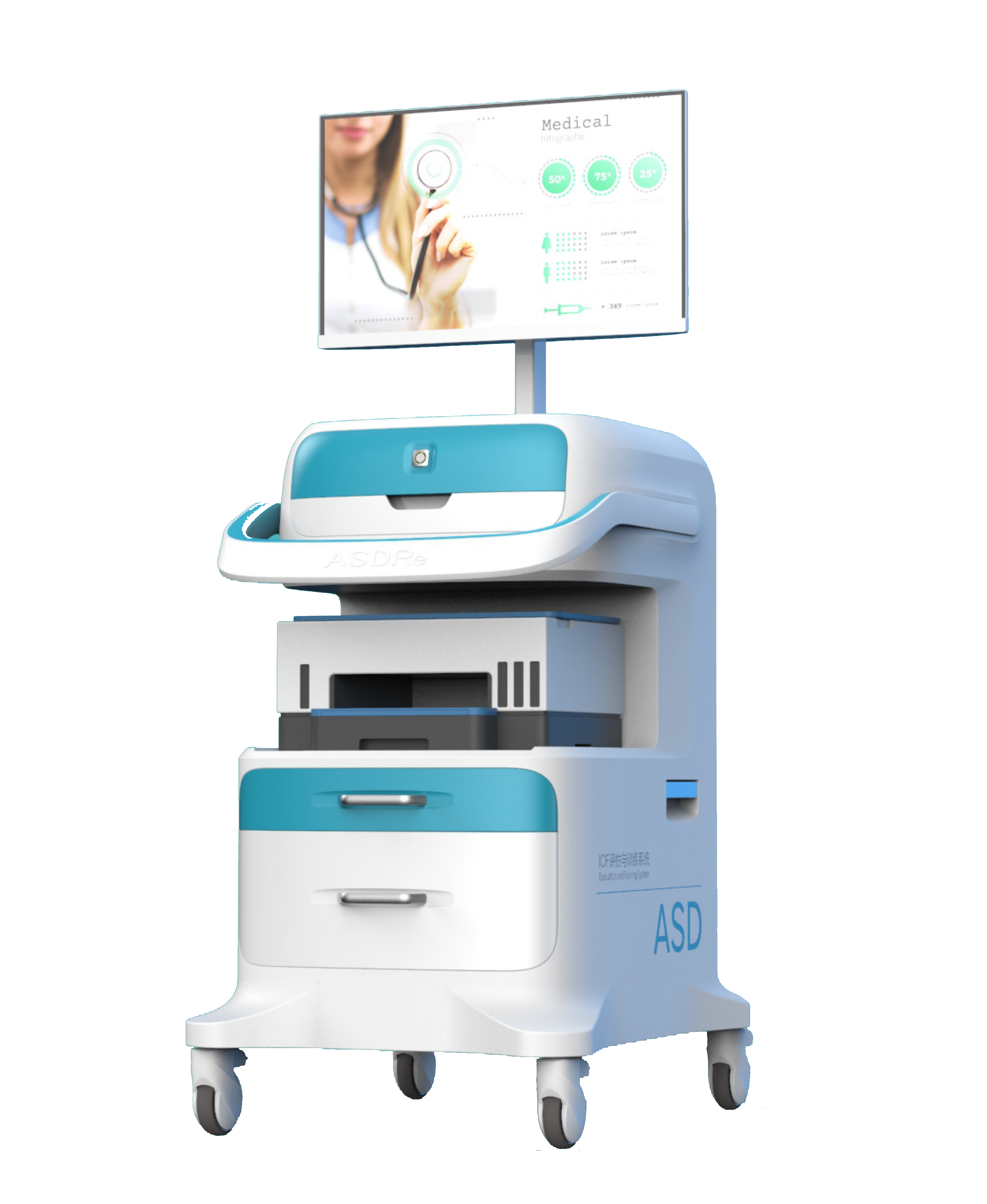 以國際ICF分類系統為基礎,特別根據ASD患者的身心特點而設計。系統由身體結構評估、身體功能評估、活動功能評估、參與功能評估和環境因素評估五大模塊構成,可自動生成個別化康復訓練計劃(IEP),匹配訓練課程、建議訓練方式、再評訓練結果,可多次迭代完成,自動生成評估報告、提出安置方案、設計課程方案。