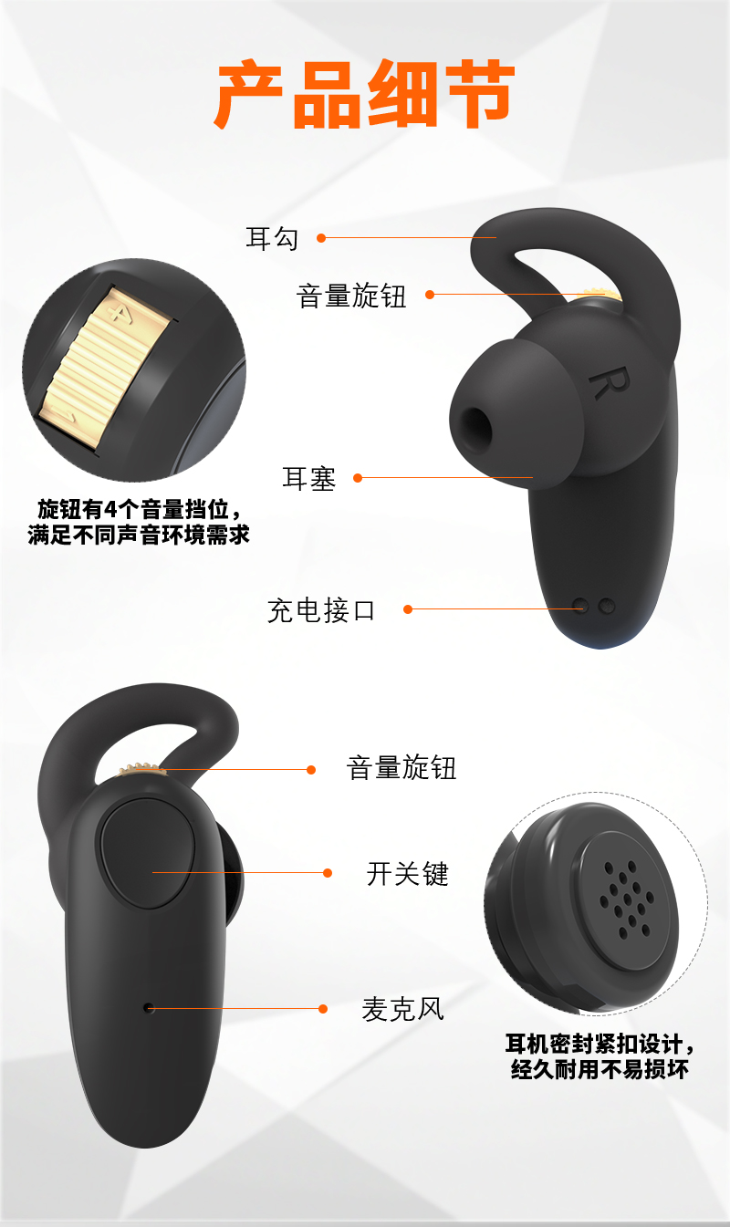 智能降噪,應急充電,手電筒照明,音質清晰,久戴不痛,不易掉落,持久續航,方便攜帶,可調音量,多場景使用