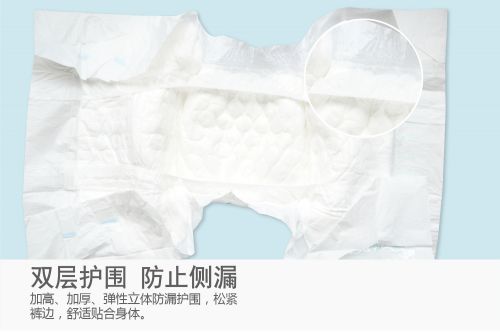 優勢:雙層立體防漏護圍、U型立體褲邊、尿顯提示功能、布紋腰能多次粘貼、更超薄鎖水反復吸收、價格適中、異味分子祛味鎖水 適用人群:產婦、經期婦女、醫院手術、嬰幼期長期臥床病人、失禁患者