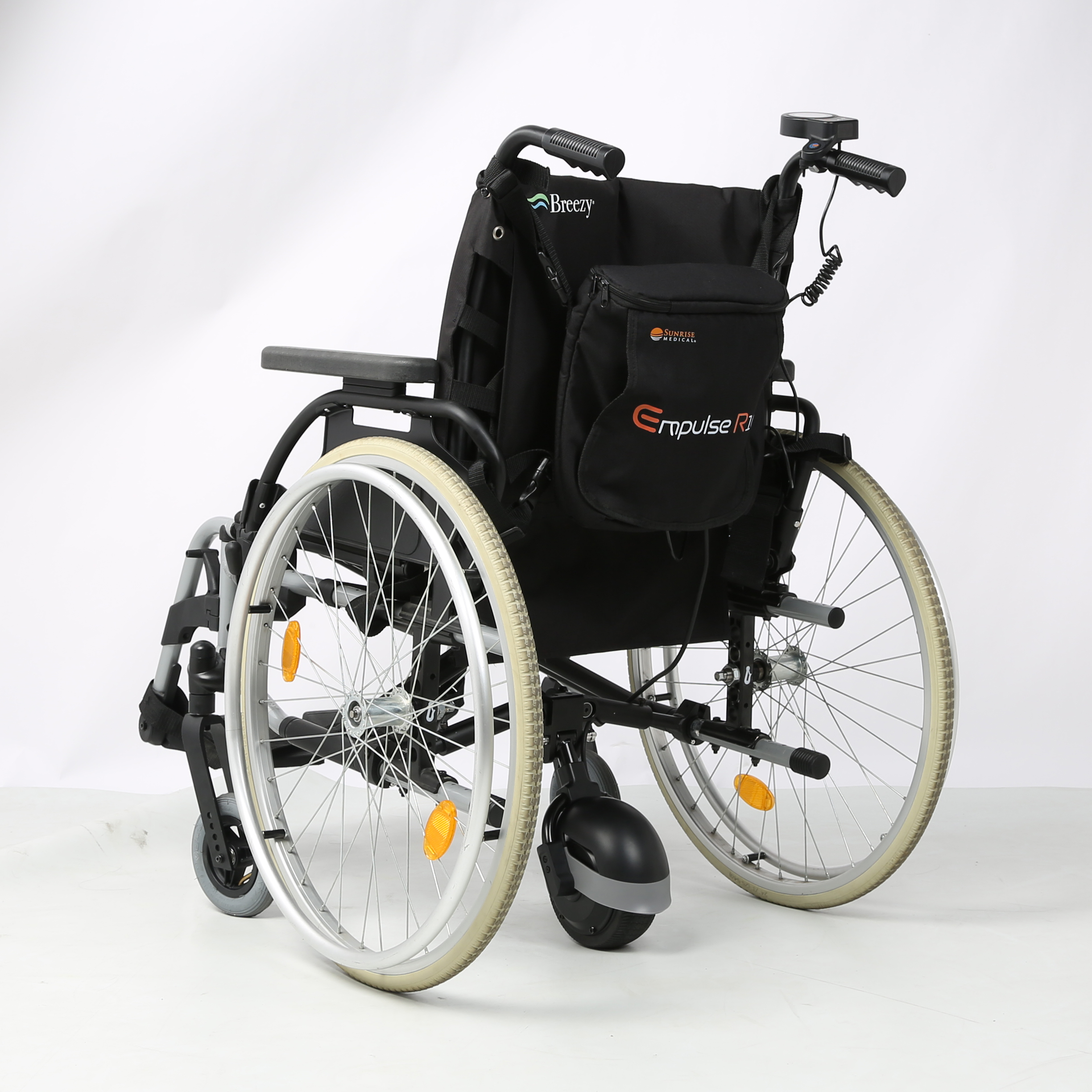 新款Empulse R10輪椅助推器 讓老年人的出行和看護照料者的推行變得非常簡單 關鍵時候,助你一臂之力 R10提供兩種助推模式 - 自動助力模式:當照看者握住后扶手時,系統自動解鎖,無需按下助力按鈕輔助推動輪椅,系統會根據輪椅當前的速度產生助推效果;用戶行走速度越快,助推效果越大。恒速助力模式:當照看者按下控制器旁邊助力按鈕后,輪椅會逐漸增大動力,將以當前選定的速度移動,有利于上坡或過坎。