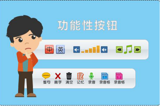 產品主要有溝通筆、核心語匯大冊、簡易版小冊、記憶貼片、錄音白板、教學設計冊構成。溝通筆言語示范采用真人錄音,發音較為標準、清晰。學生使用點讀筆朗讀核心語匯冊中的名詞、基本句型和問答等貼合實際生活的內容,能更快掌握發音、字形、實物、使用句型和問答交流,進而提高他們在一般溝通對話中的溝通效能。