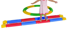 組件:由8片曲線+8片直線+4塊方磚,觸覺板組合成步驟,觸點提供神經刺激訊號,加強兒童觸覺學習,亦可與萬象組配合,做平衡動作系列。
