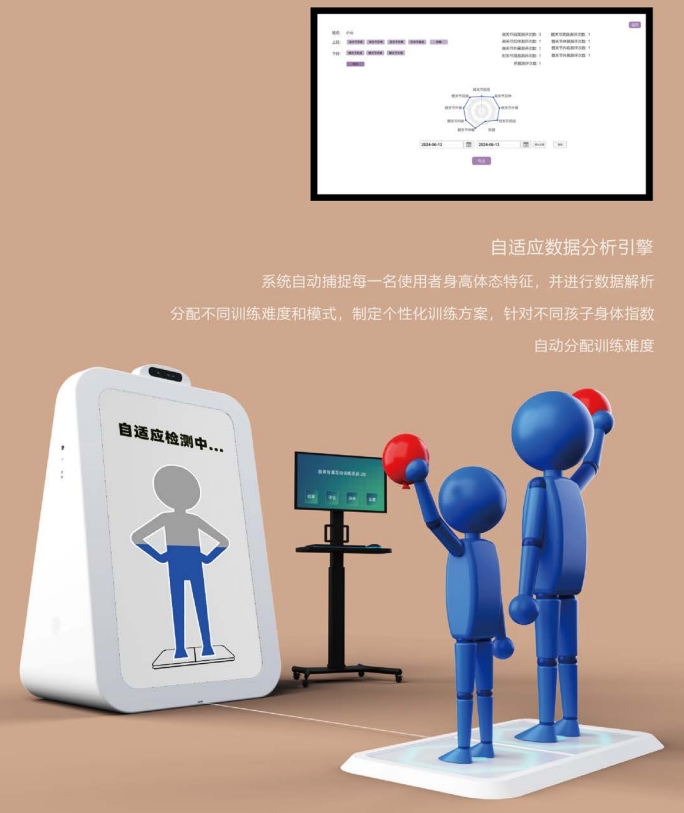 肢體協調互動訓練系統采用自適應學習引擎、數據分析引擎等核心技術,對兒童的上下肢以及體態進行全面評估與針對性訓練。 系統內置評估功能,康復師可針對每一名兒童進行系統評估,例如:上下肢肌力平衡性、協調性等進行科學的評估。大數據引擎可對評估結果進行對比與分析,自動生成評估報告,各項功能指標數據化、圖形化,一目了然,方便康復師查詢、導出與存檔。